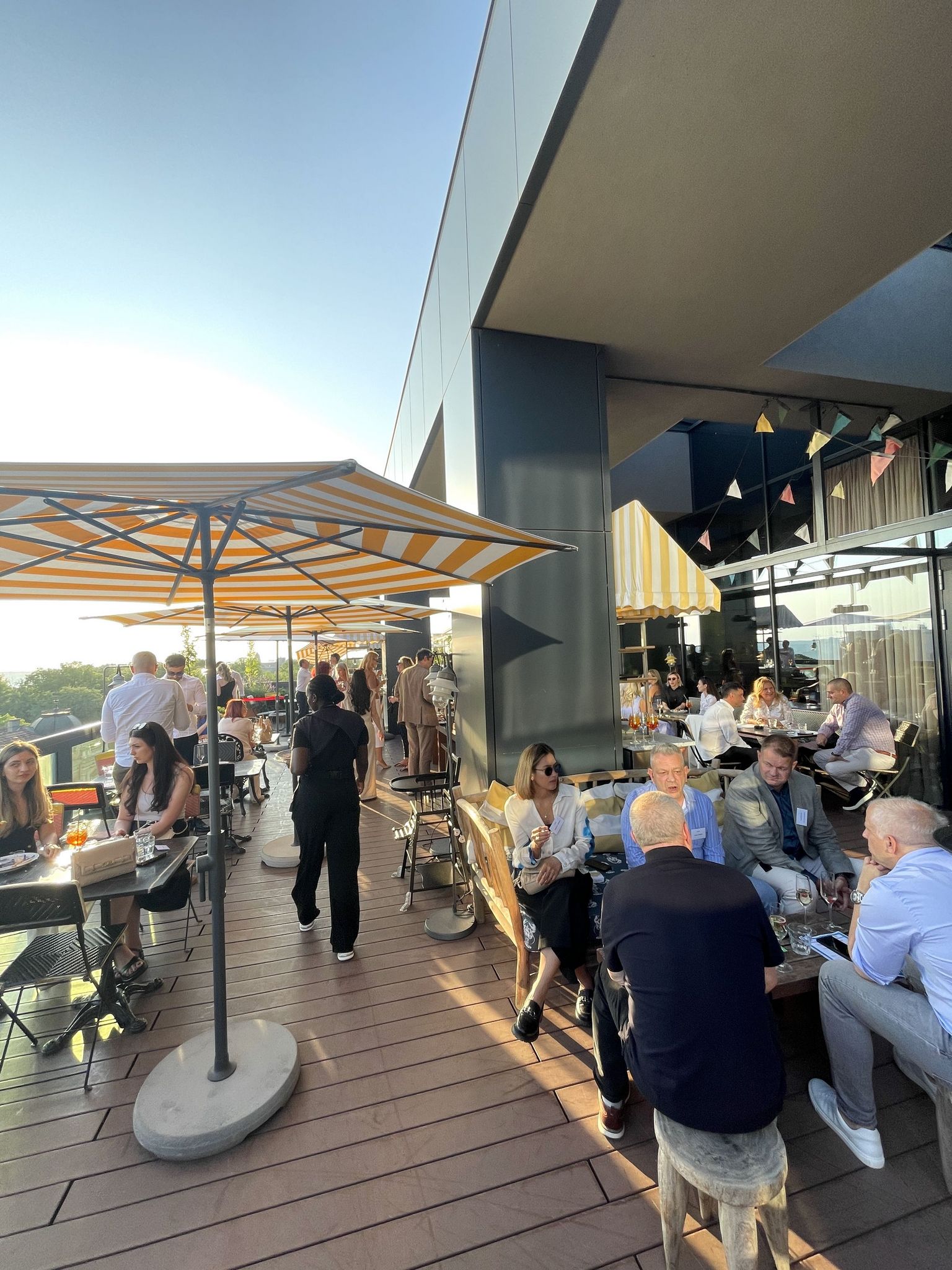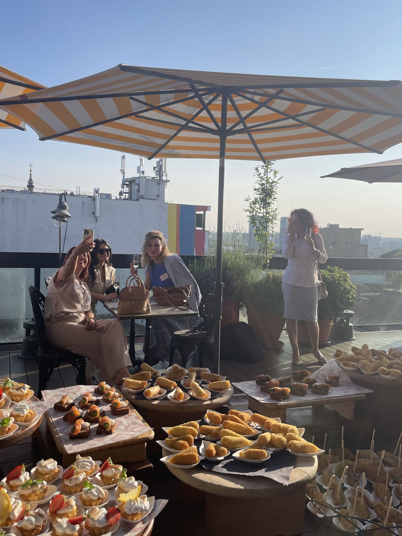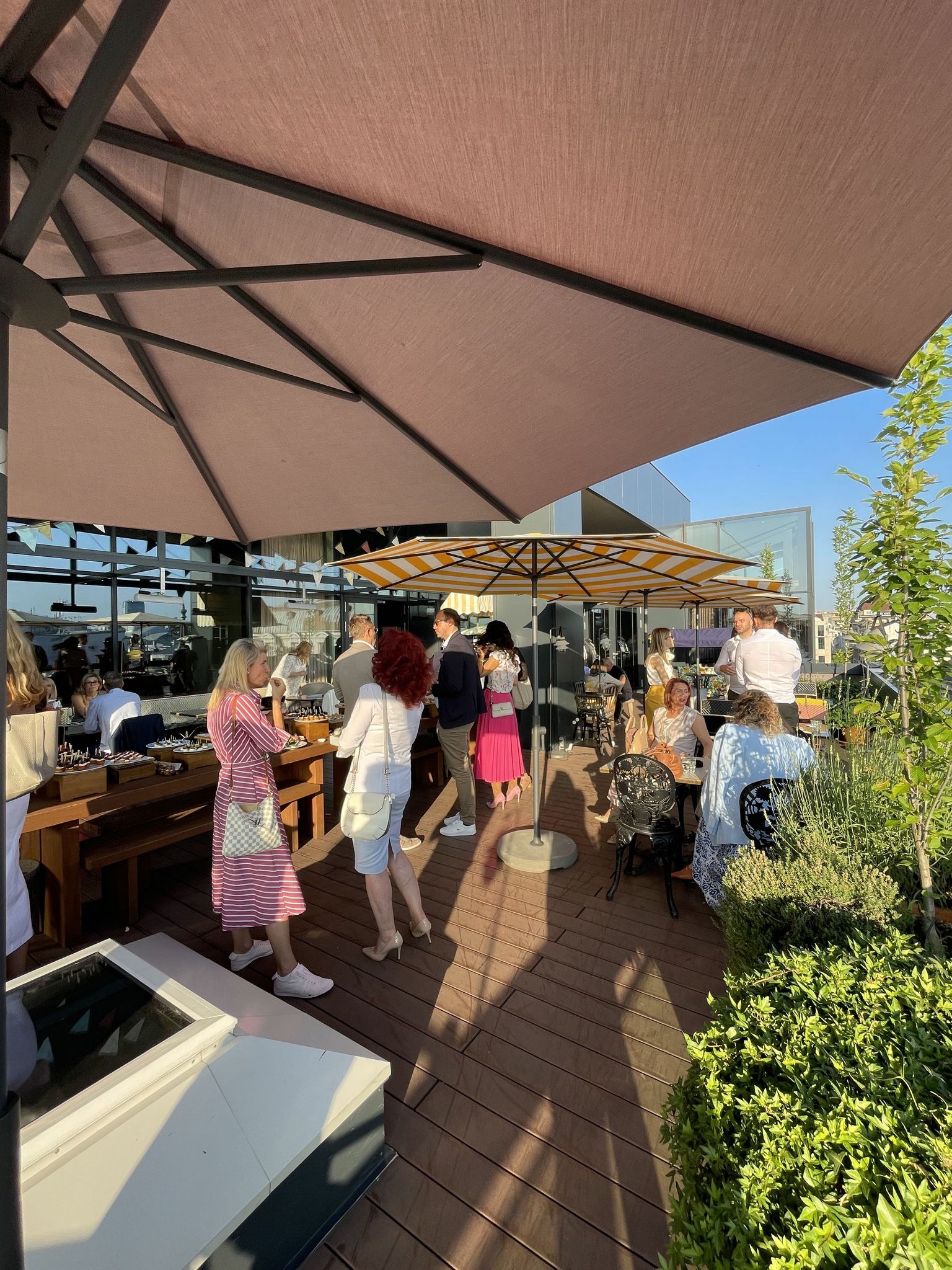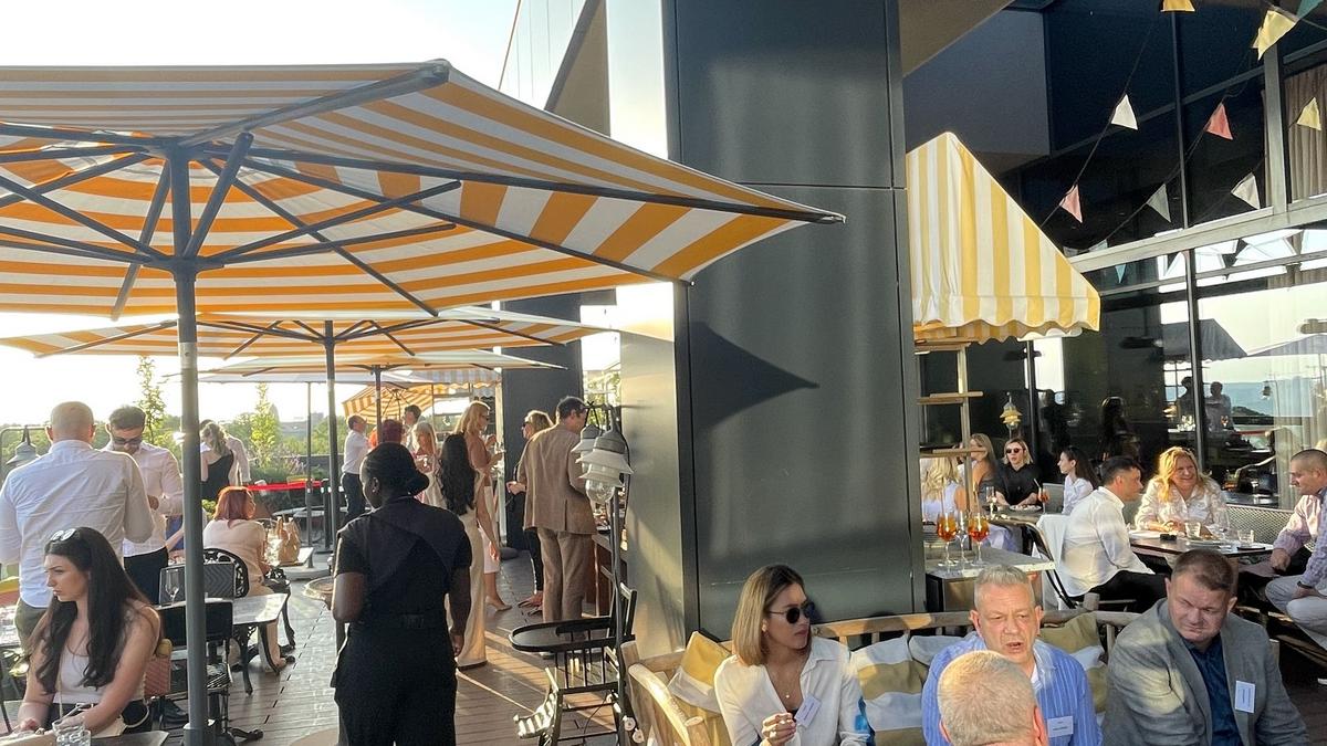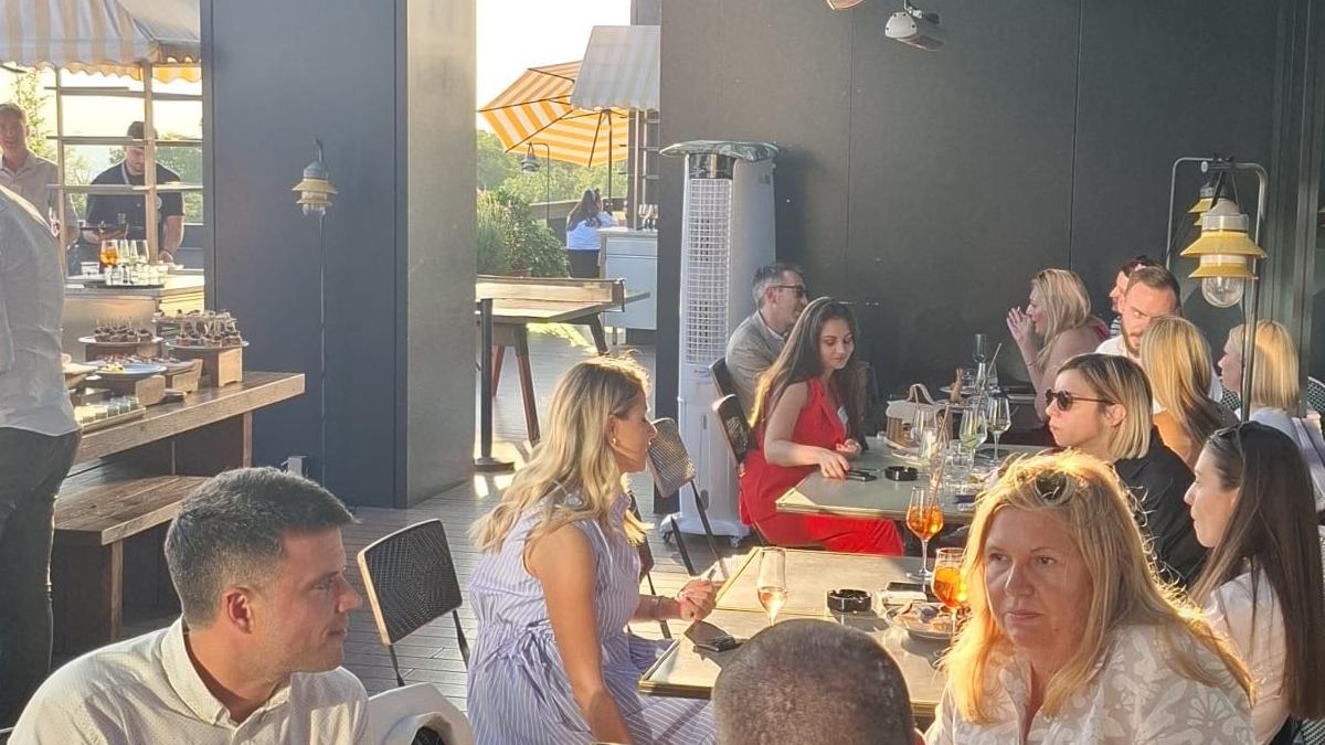 Le cocktail s’est tenu sur la terrasse panoramique de l’hôtel, offrant une vue spectaculaire sur l’un des plus beaux couchers de soleil de Belgrade, le tout accompagné d’une sélection généreuse de plats savoureux et de boissons rafraîchissantes.