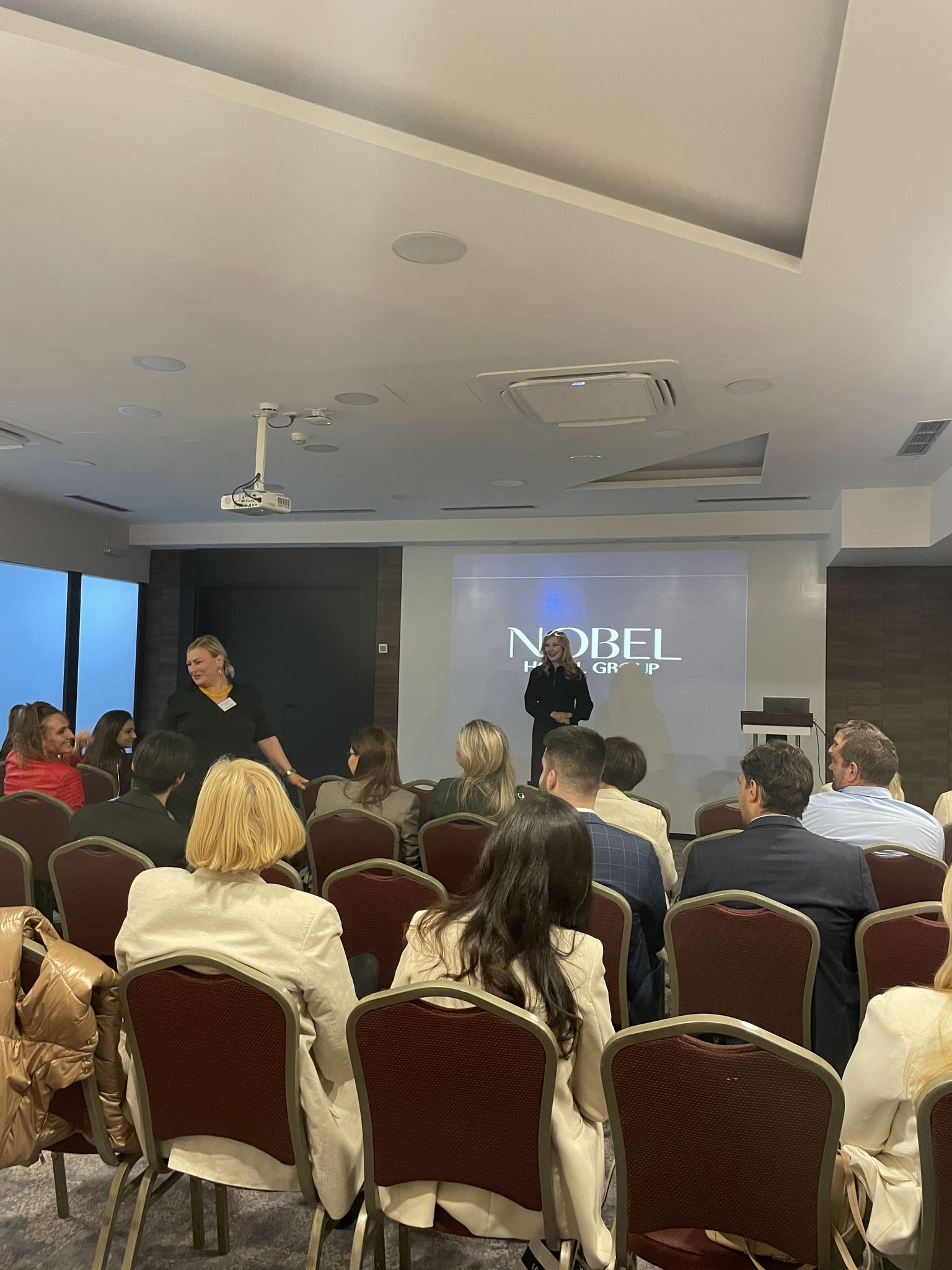 La soirée a été ouverte par notre directrice générale, Sanja Ivanić, qui a présenté les projets actuels et futurs de la Chambre. Sanja Subotić Mihajlović, représentante du groupe Nobel Hotel, a ensuite pris la parole pour présenter le groupe ainsi que les diverses activités proposées par l’hôtel, en soulignant sa place dans le secteur hôtelier serbe.