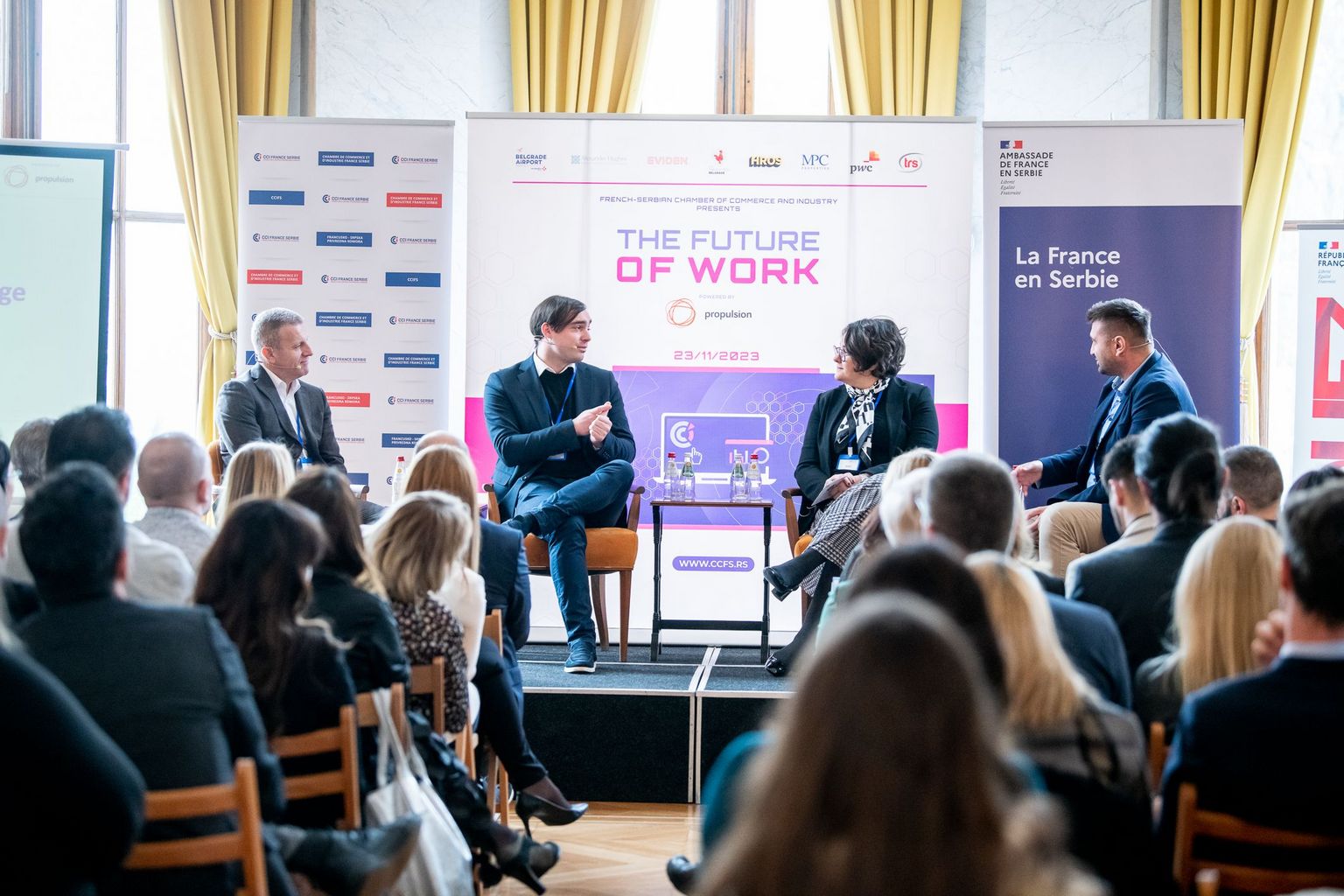 En coopération avec L’Ambassade de France en Serbie , en cadre de la onzième Semaine Francaise, CCIFS a organisé la conférence intitulée „L'avenir du travail“ (powered by Propulsion) qui s'est tenu le 23. novembre dans les locaux de l'Ambassade.