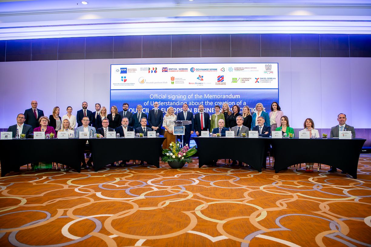 Les associations d'entreprises européennes et les chambres bilatérales qui représentent les intérêts des entreprises à capitaux européens en Serbie se sont réunies pour créer le Conseil des associations et chambres d'entreprises européennes en Serbie. Le mémorandum d'association a été signé le 14 mai, marquant le début d'une nouvelle ère de coopération et de synergie du secteur des affaires européen en Serbie. L'organisme nouvellement créé définira les intérêts communs dans ses travaux futurs et constituera une plate-forme pour toutes les initiatives et activités futures.