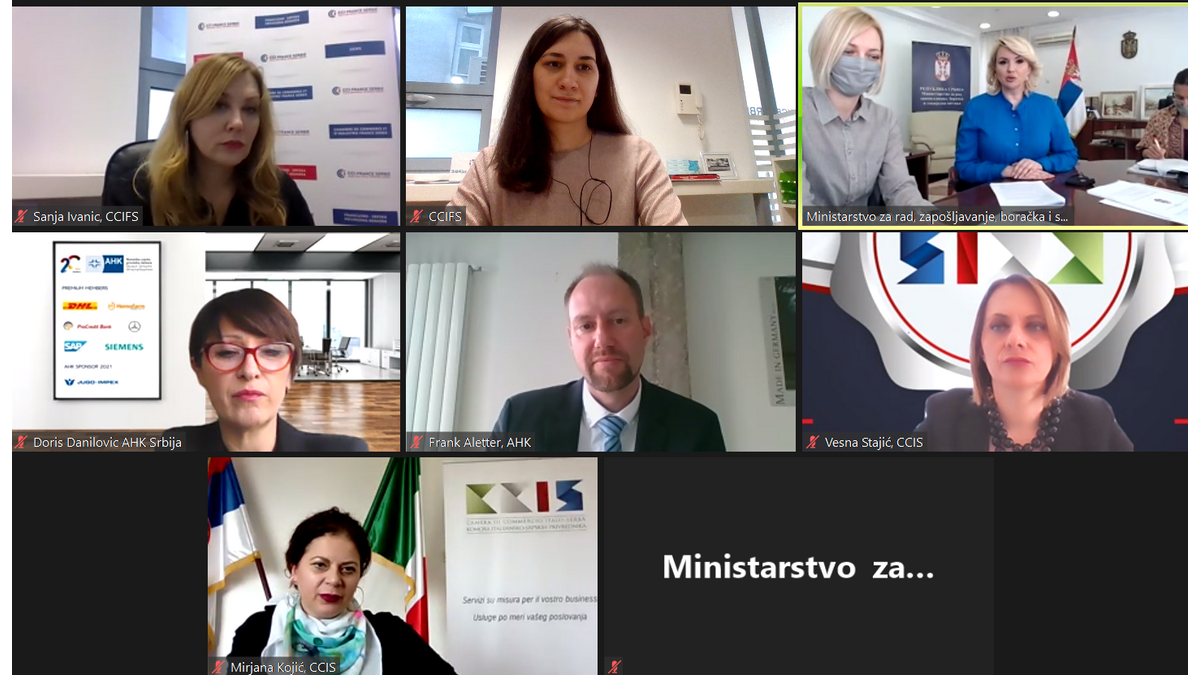 Le jeudi 25 février, en coopération avec la Chambre de commerce germano-serbe (AHK Serbie) et la Chambre de commerce italo-serbe (CCIS), nous avons organisé une réunion virtuelle avec des représentants du Ministère du travail, de l'emploi et des affaires sociales.