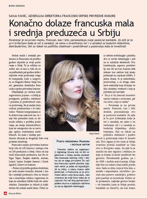 Directrice de la CCIFS, Sanja Ivanić, interviewée par Magazin Biznis