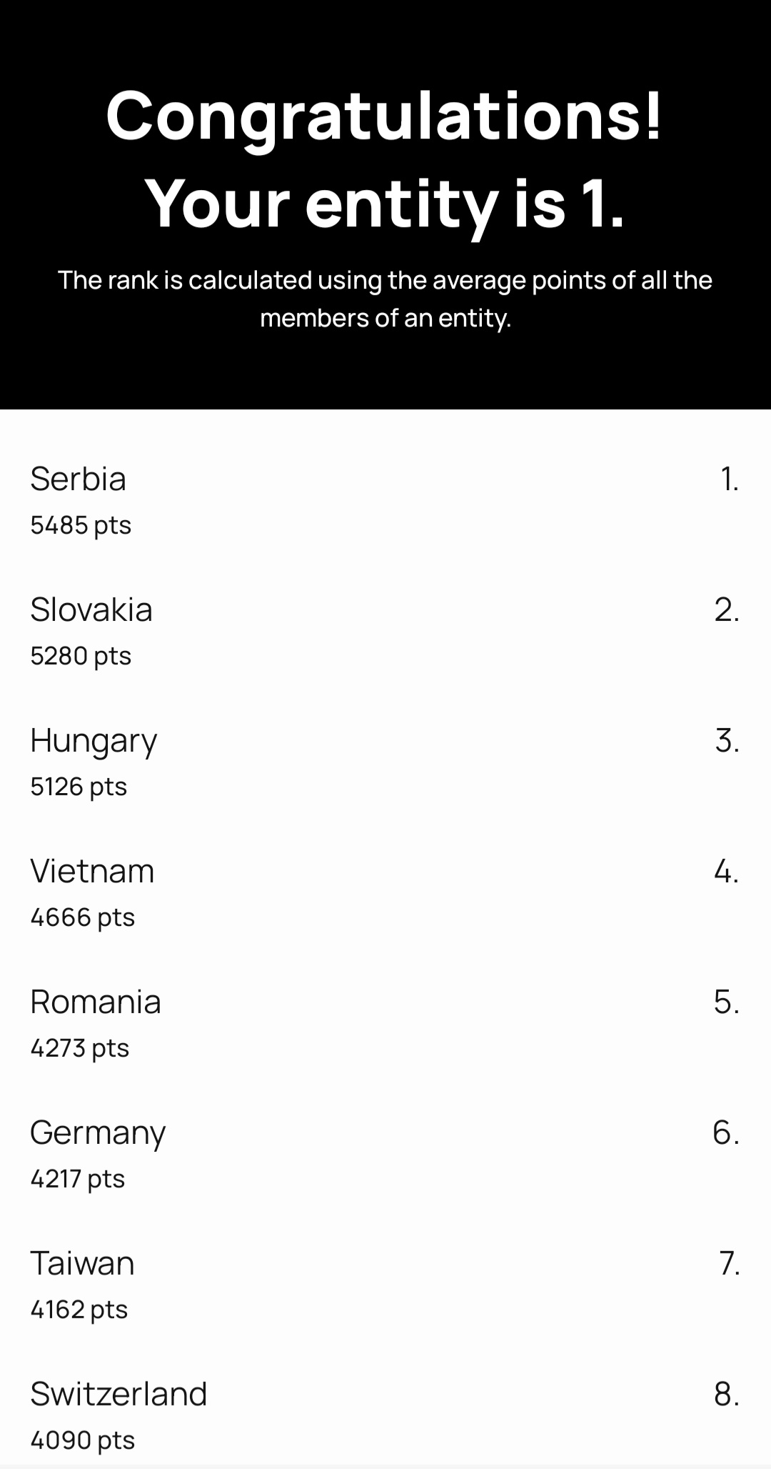 Nous félicitons toutes nos équipes pour les résultats obtenus et l'esprit d'équipe qui a conduit la Serbie à la première place au niveau national.