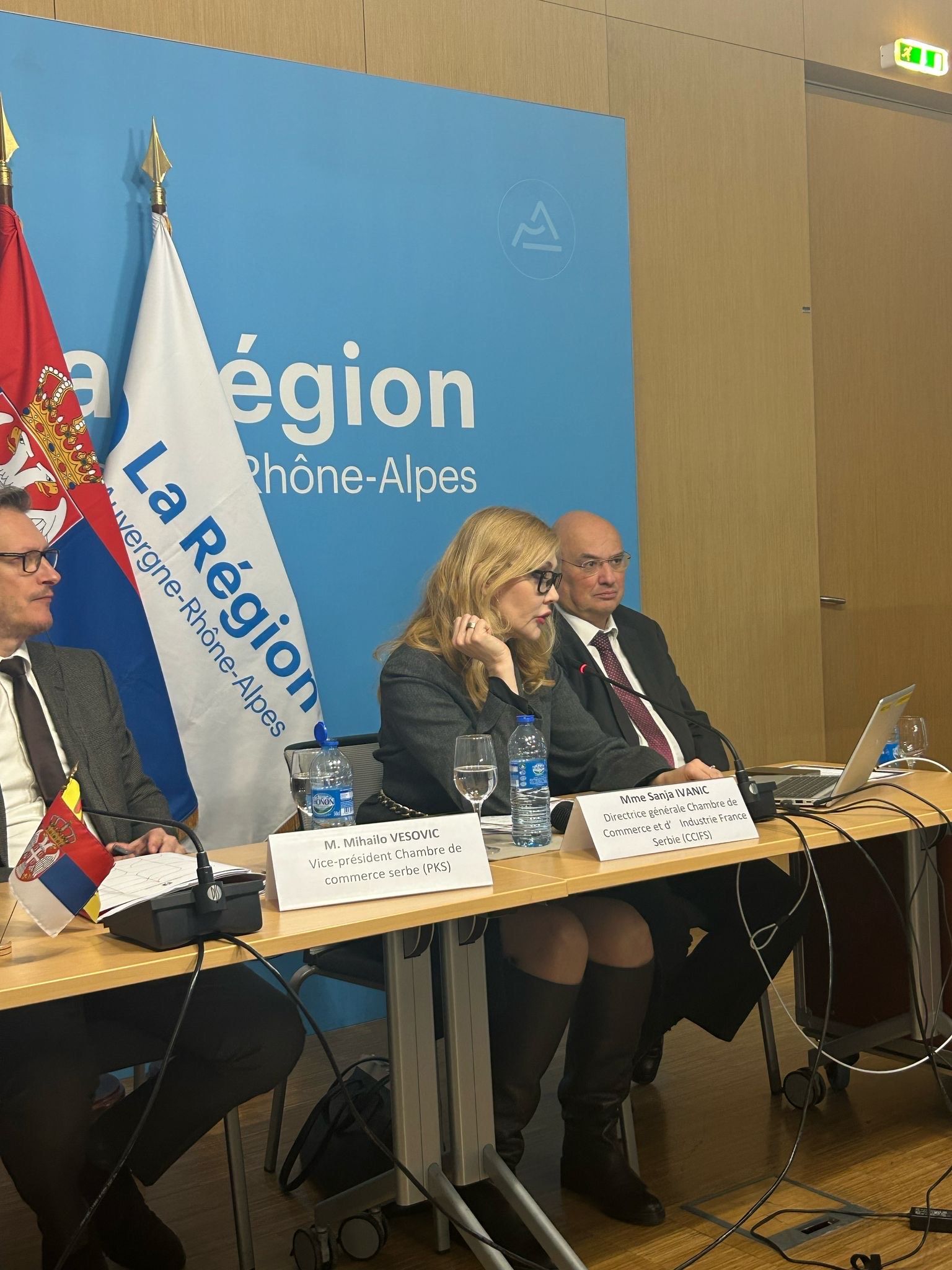 Au Forum économique Auvergne– Rhône– Alpes – Serbie, qui s'est tenu le 10 mars 2025 à Lyon, la directrice de la CCIFS,Sanja Ivanić, a échangé avec Bertrand Vélon (Directeur international de la CCI Auvergne-Rhône-Alpes), Marek Woda (Délégué international de BPI France) et Mihailo Vesovic (Vice-président de la Chambre de commerce de Serbie) sur les opportunités pour les entreprises françaises en Serbie et les moyens de les accompagner sur ce marché en pleine croissance.