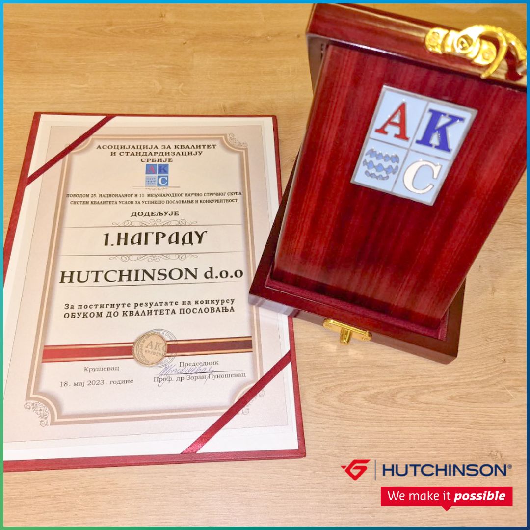 La conférence internationale où s'est déroulé le concours "Formation pour la qualité des affaires" s'est tenue à Kopaonik. L'équipe de notre membre, la société Hutchinson, a remporté la première place. Le prix a été remis par un représentant du Ministère de l'Économie et le président de l'Association pour la qualité et la normalisation de Serbie. Le travail continu visant à améliorer la qualité et l'efficacité de tous les aspects de l'entreprise a permis à l'équipe de notre membre de remporter la première place lors de la compétition et de recevoir un prix qui, nous en sommes convaincus, sera une motivation pour de futurs succès.