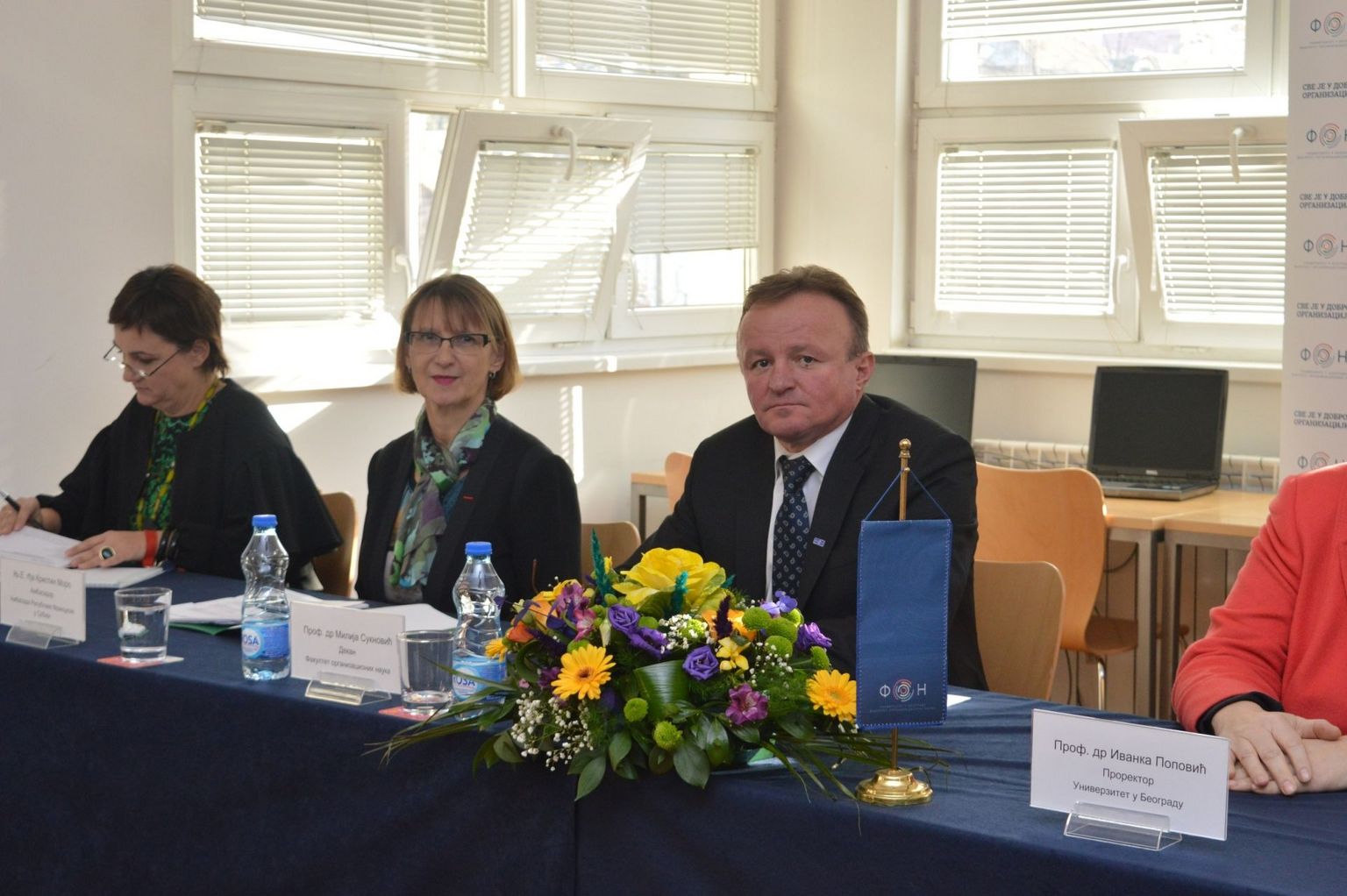 A cette occasion, l'ambassadeur de France en Serbie, S.E. Christine MORO a tenu une conférence pour les étudiants de la faculté dont le sujet était La stratégie française en faveur des technologies innovantes et de leur développement en Serbie.