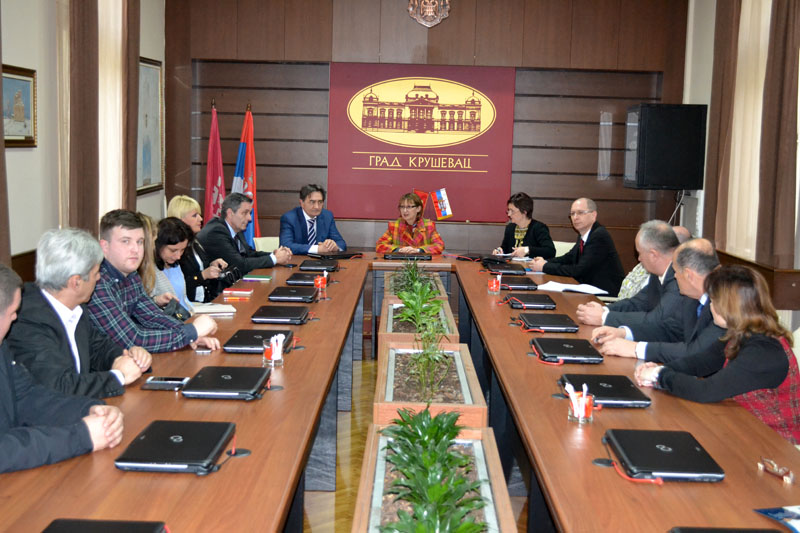 La réunion a commencé par un entretien de l’Ambassadeur Moro avec le maire de Krusevac et ses collaborateurs, afin d’être pousuivie sur les thèmes économiques, en présence de la CCIFS et la Chambre de Commerce régionale de Krusevac. Les sociétés locales qui exportent vers la France ont également présenté leur activité; Coopertires, Rubin, Vino Zupa, Voceprodukt et Fabrika maziva FAM. Les représentants de la ville ont souligné que, en 2015, l’échange commercial entre la France et la région de Kursevac a augmenté de 45%. En 2015, la région a exporté la marchandise dans la valeur de 7.5 millions de dollars alors que la valeur des importations a atteint 4,5 millions de dollars. De la totalité des exportations serbes vers la France, Krusevac exporte 4 %, principalement des fruits congelés, des pneumatiques et des lubrifiants industriels. Les représentants de la ville ont déclaré qu’ils souhaitent augmenter les exportations vers le marché français. Les représentants de l’office de tourisme ont rappelé que, en plus de l’aspect historique de la ville de Krusevac qui avait été la capitale serbe au moyen âge, l’offre touristique mîse avant tout sur le tourisme médical et l’hôpital de Ribnicka banja qui traite les maladies des os et des muscles et inclut également un centre spa.