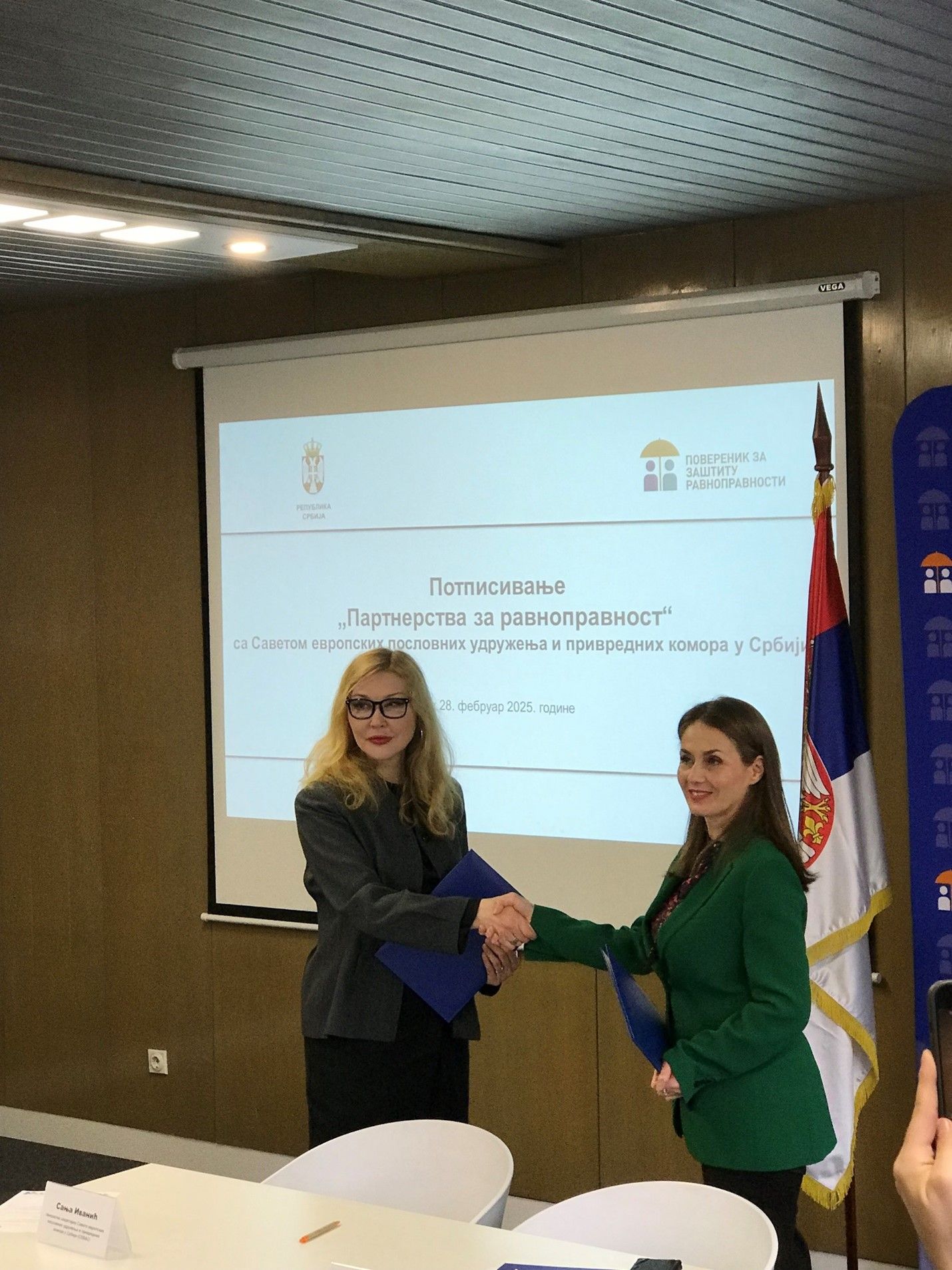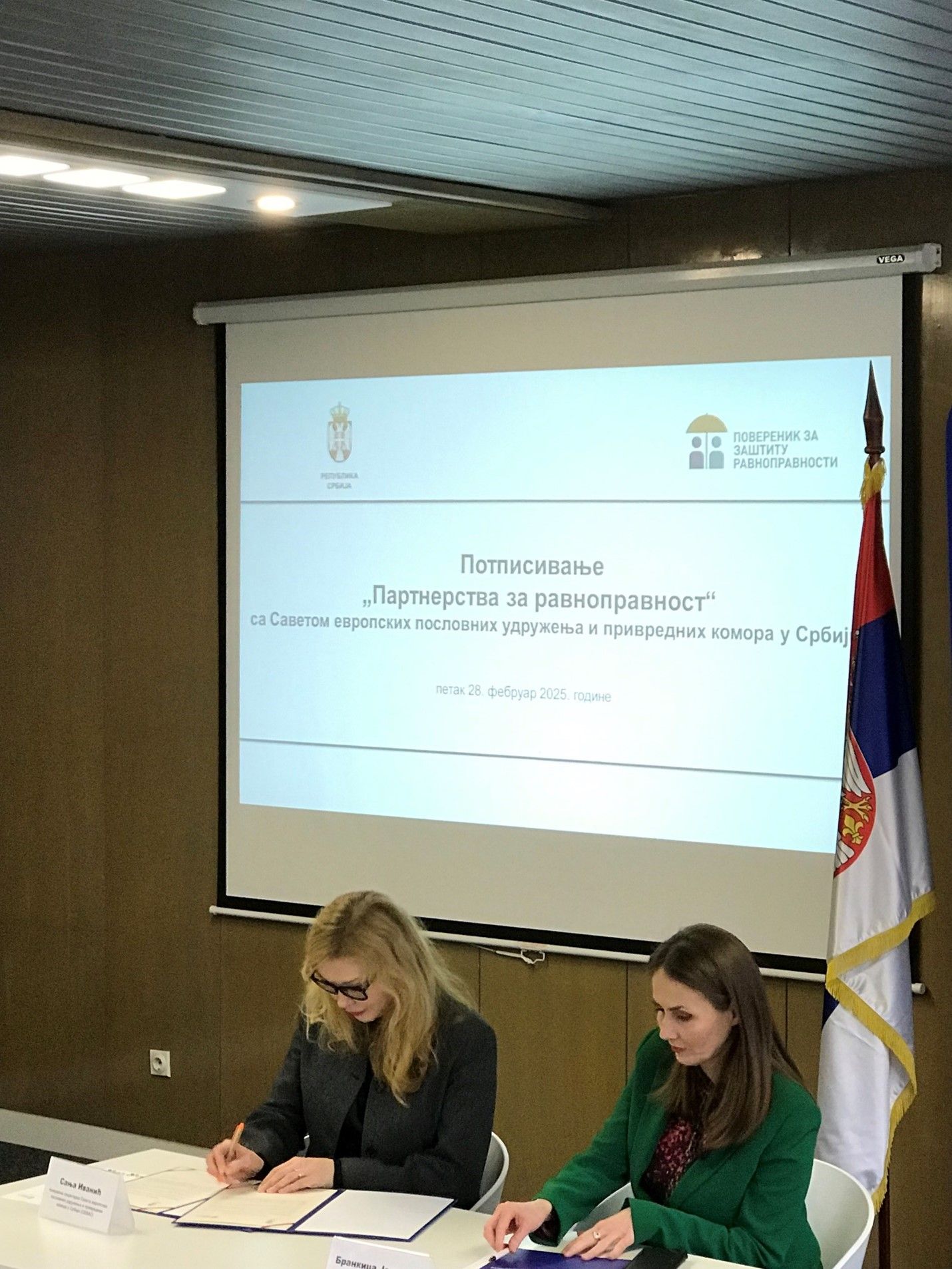 Sanja Ivanić, Secrétaire Générale du CEBAC, a signé aujourd'hui, le 28 février, la Charte « Partenariat pour l'égalité » dans les locaux du Commissaire à la protection de l'égalité. Cette signature vise à sensibiliser, à renforcer les capacités des employeurs pour l'adoption de la charte de l'égalité, à prévenir les pratiques discriminatoires et à promouvoir un comportement commercial responsable.