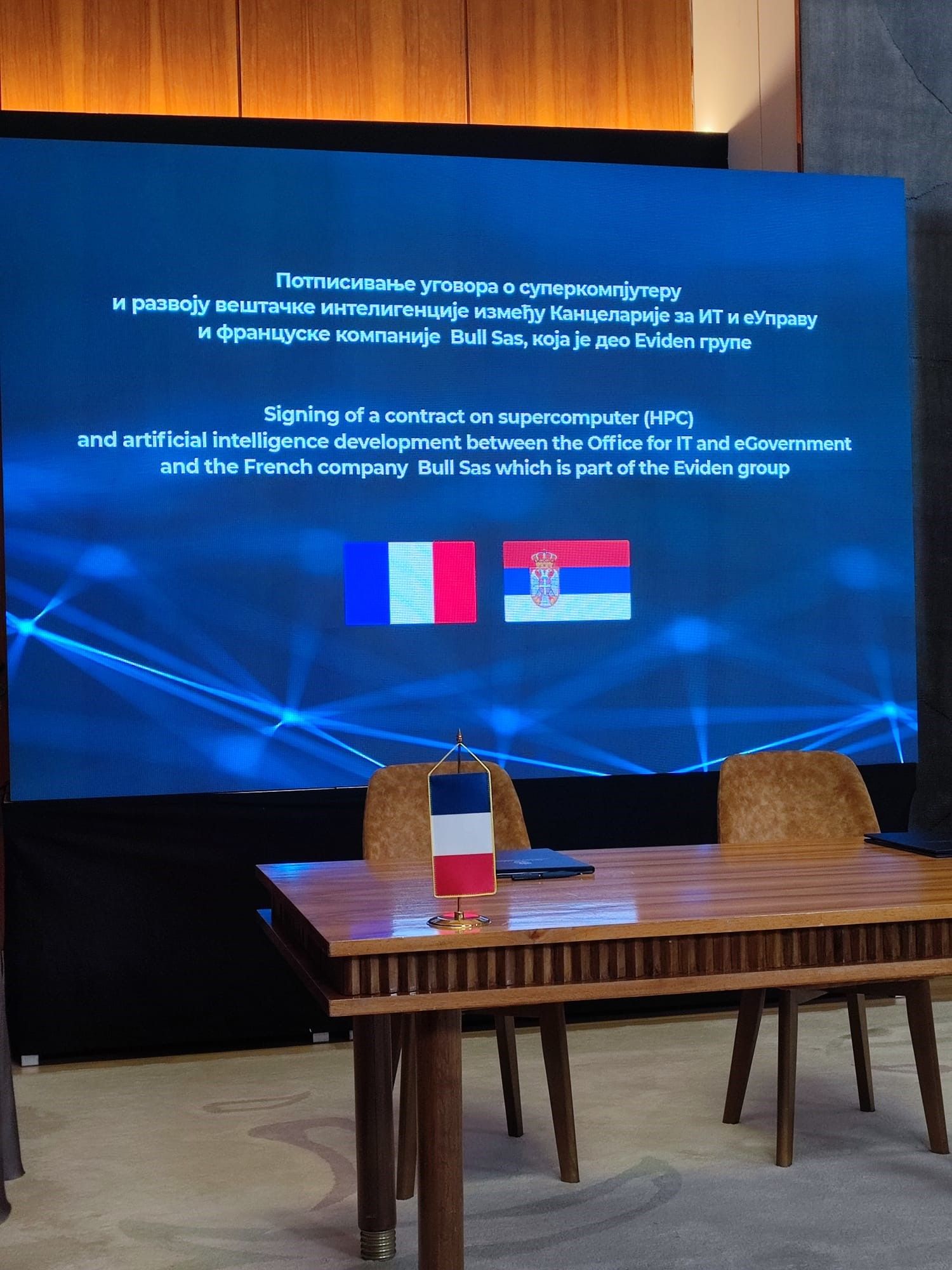 Le contrat a été signé par Mihailo Jovanović, directeur du Bureau pour les TI et l’e-Gouvernement, et, par procuration du directeur de l’entreprise Bull SAS, par Alexandre Jouy, directeur adjoint du groupe Eviden.