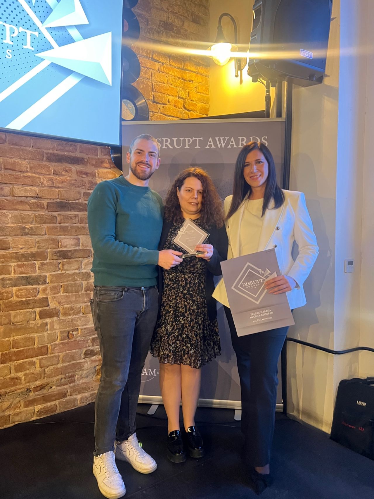 Lors de la cérémonie de remise des prix, les représentants de la société Telekom Srbija ont reçu la distinction au nom de l'entreprise : Una Zabunov, responsable du service de communication marketing numérique, Jovana Matić, responsable du marketing numérique, et Filip Đorđević, chargé de marketing numérique.