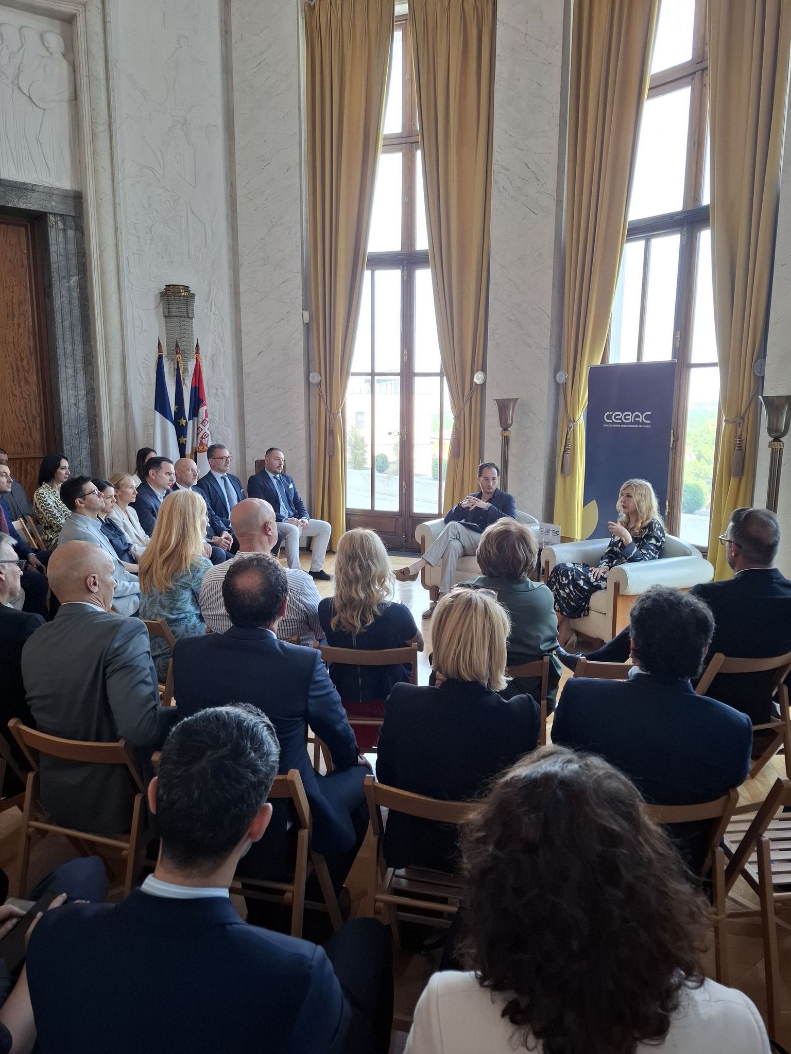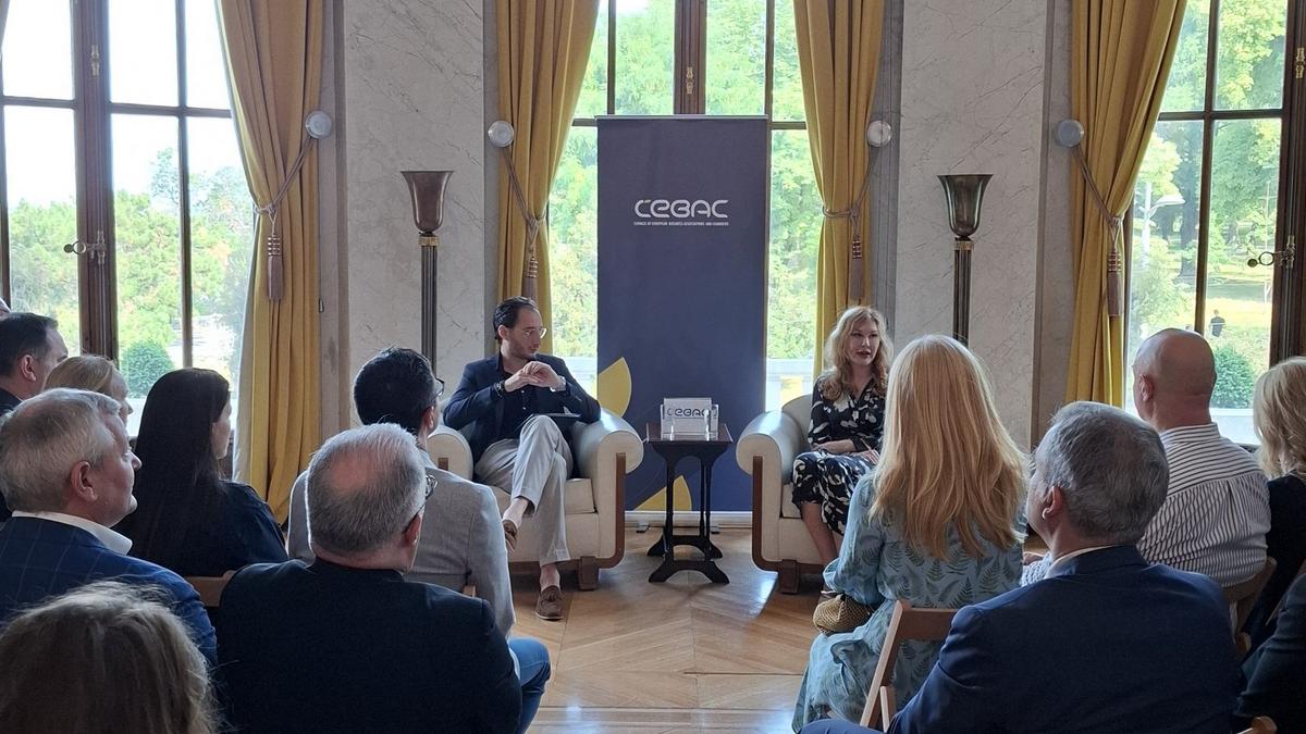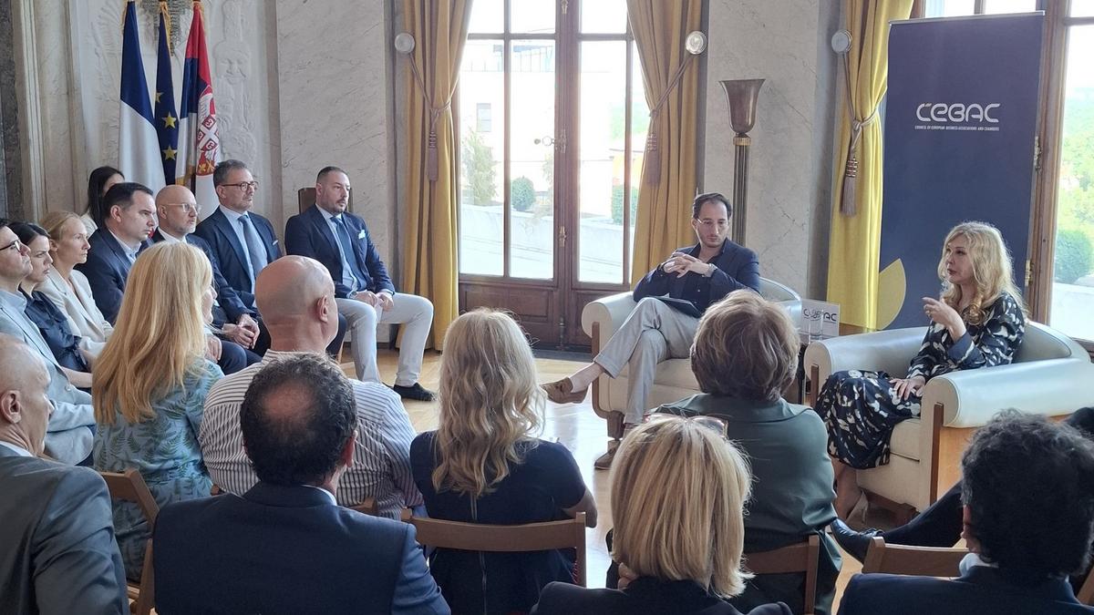 La discussion a été animée par Sanja Ivanic, Directrice de la Chambre de commerce et d'industrie France Serbie et Secrétaire Générale du CEBAC, accompagnée d’Oliver Sarov, représentant de la Délégation de l’UE en Serbie, en tant que modérateur.