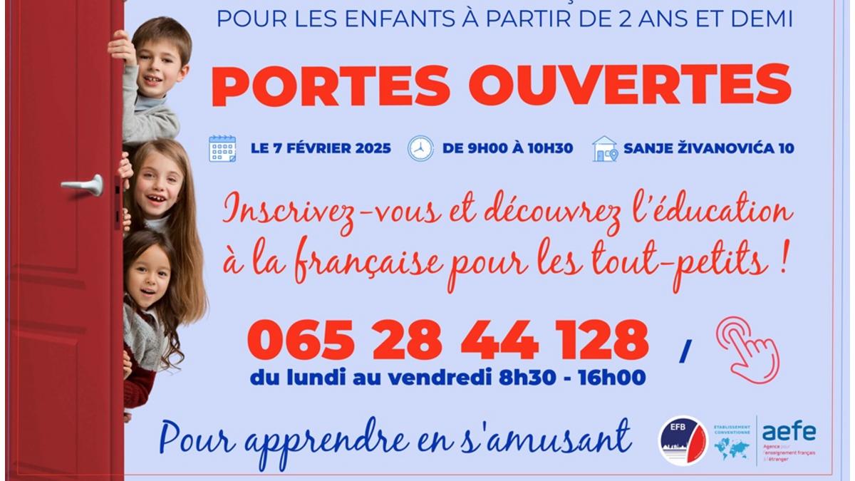 L'École Française de Belgrade invite tous les intéressés à venir aux Portes Ouvertes le 7 février pour découvrir le système éducatif français pour les enfants à partir de 2 ans et demi.
