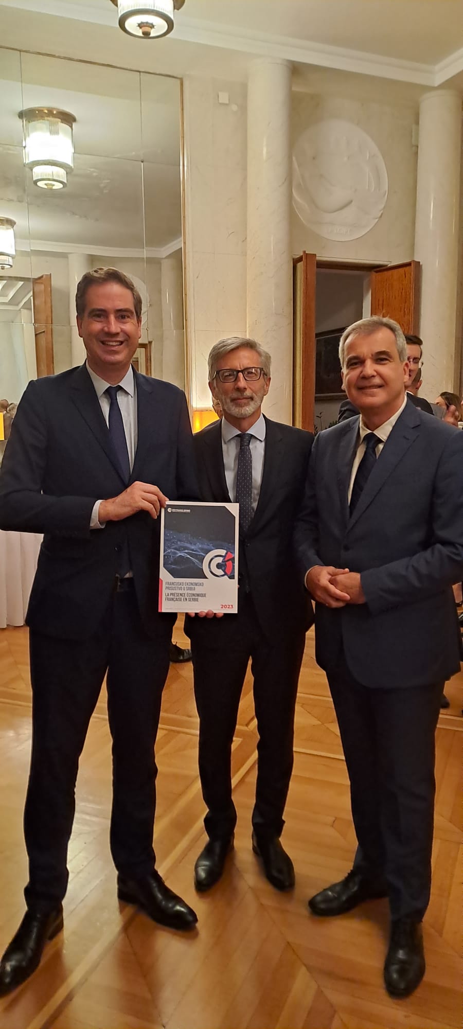 Le président de la Chambre de Commerce Franco-Serbe, M. Dragan Stokić, à l'invitation de Sa Majesté. E. Pierre Cochard, ambassadeur de France en Serbie, a assisté à l'arrivée du ministre à l'ambassade. À cette occasion, notre président a remis au ministre Becht la publication dans laquelle les champions des échanges bilatéraux sont énumérés ainsi que les secteurs de l'économie serbe dans lesquels les entreprises françaises apportent leur contribution.