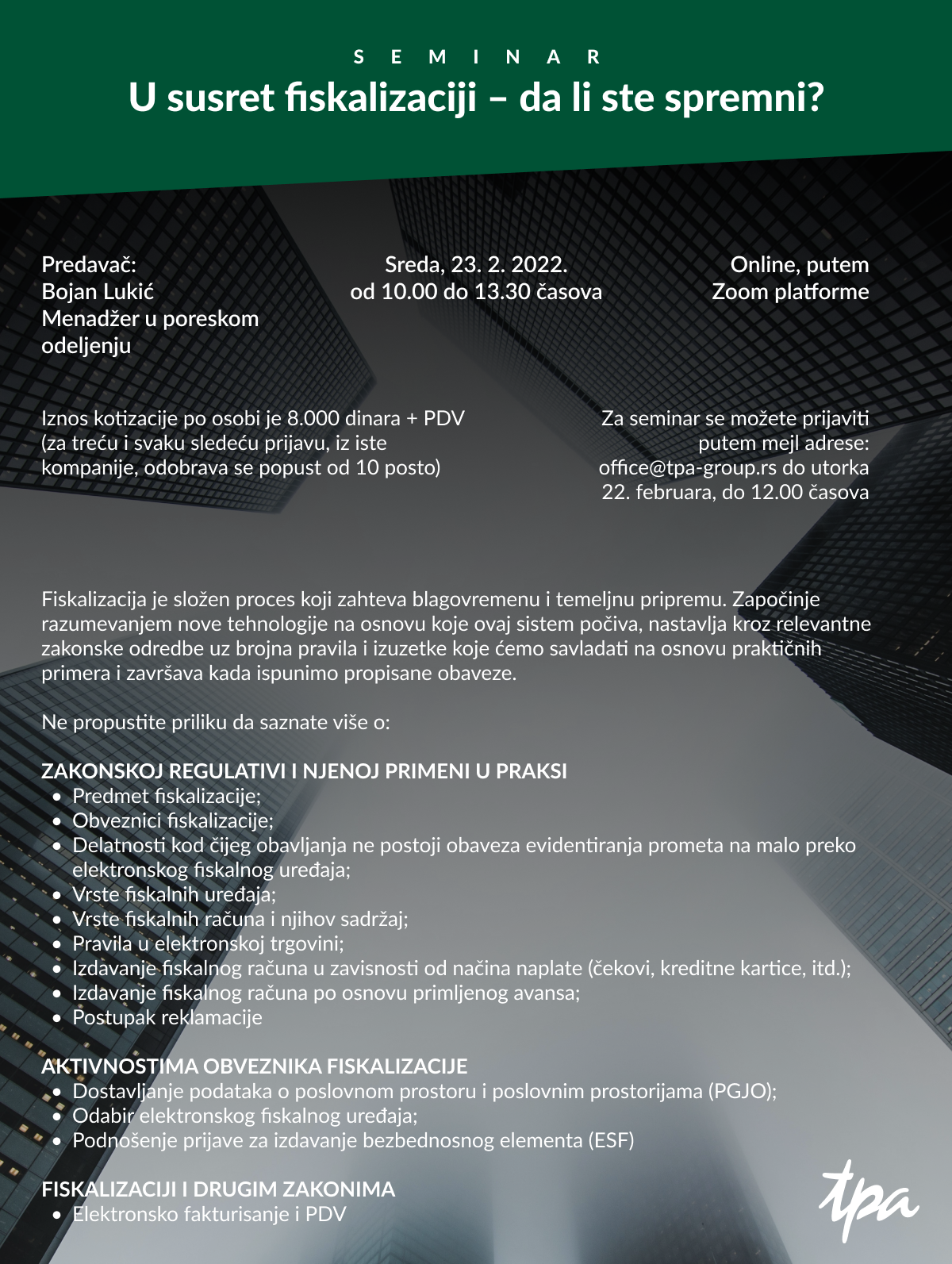 Les inscriptions se font via office(@)tpa-group.rs.