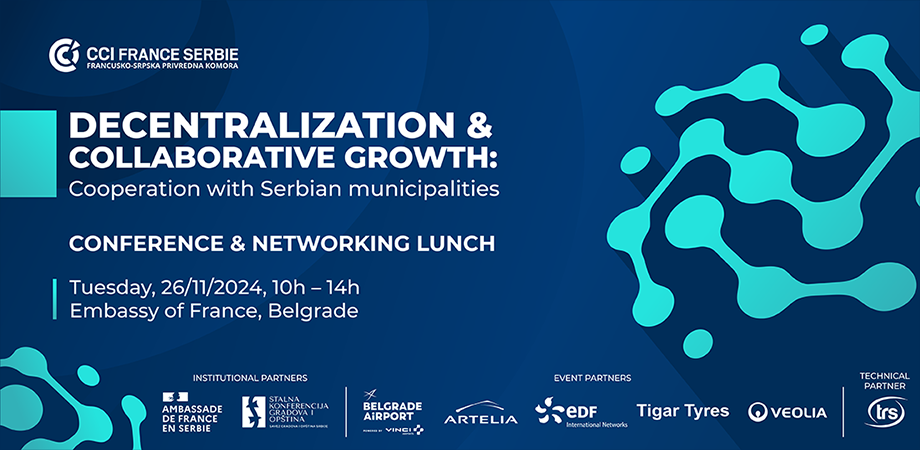 Avec plaisir, nous annonçons la conférence DECENTRALIZATION & COLLABORATIVE GROWTH: Cooperation with Serbian municipalities que nous organisons le 26 novembre 2024, traditionnellement à l'Ambassade de France à Belgrade.