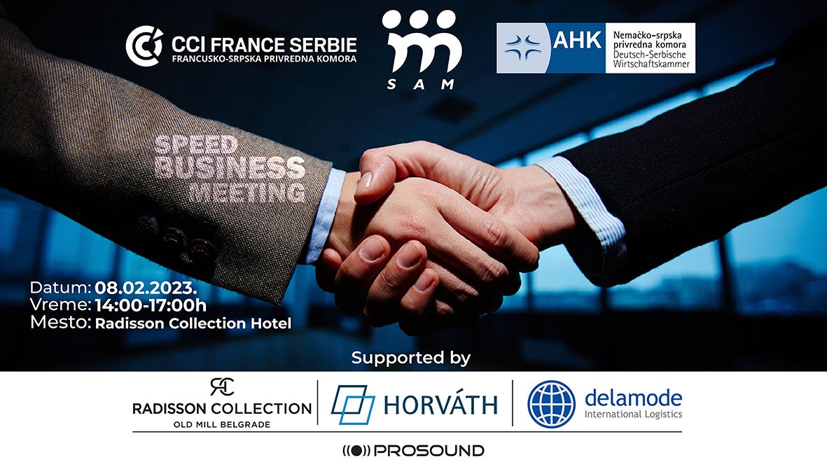 La CCIFS, en collaboration avec la Chambre de commerce germano-serbe (AHK Serbie) et l'Association serbe des managers (SAM) vous invite à marquer la date dans vos agendas pour le premier Speed Business Meeting de cette année.