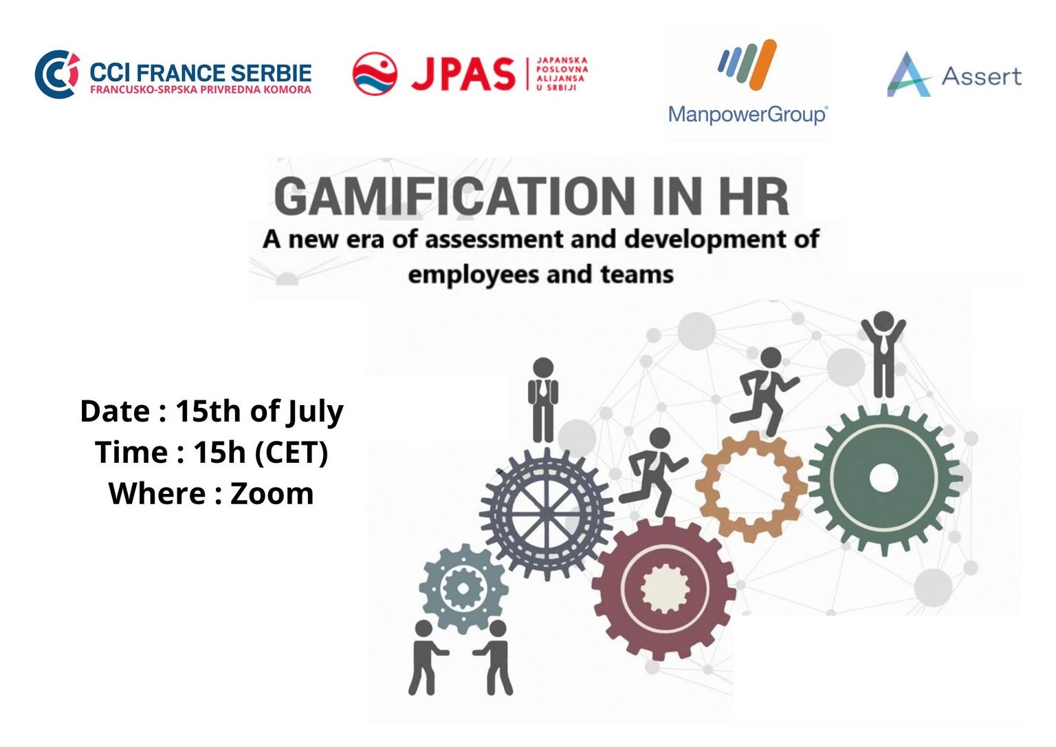 C'est avec plaisir que nous vous invitons au webinaire ‘Nouvelle ère de l'évaluation et du développement des employés et des équipes - la gamification?', organisé en coopération avec notre membre, ManpowerGroup et leurs consultants Assert et notre partenaire, l'Alliance d'affaires serbo-japonaise.