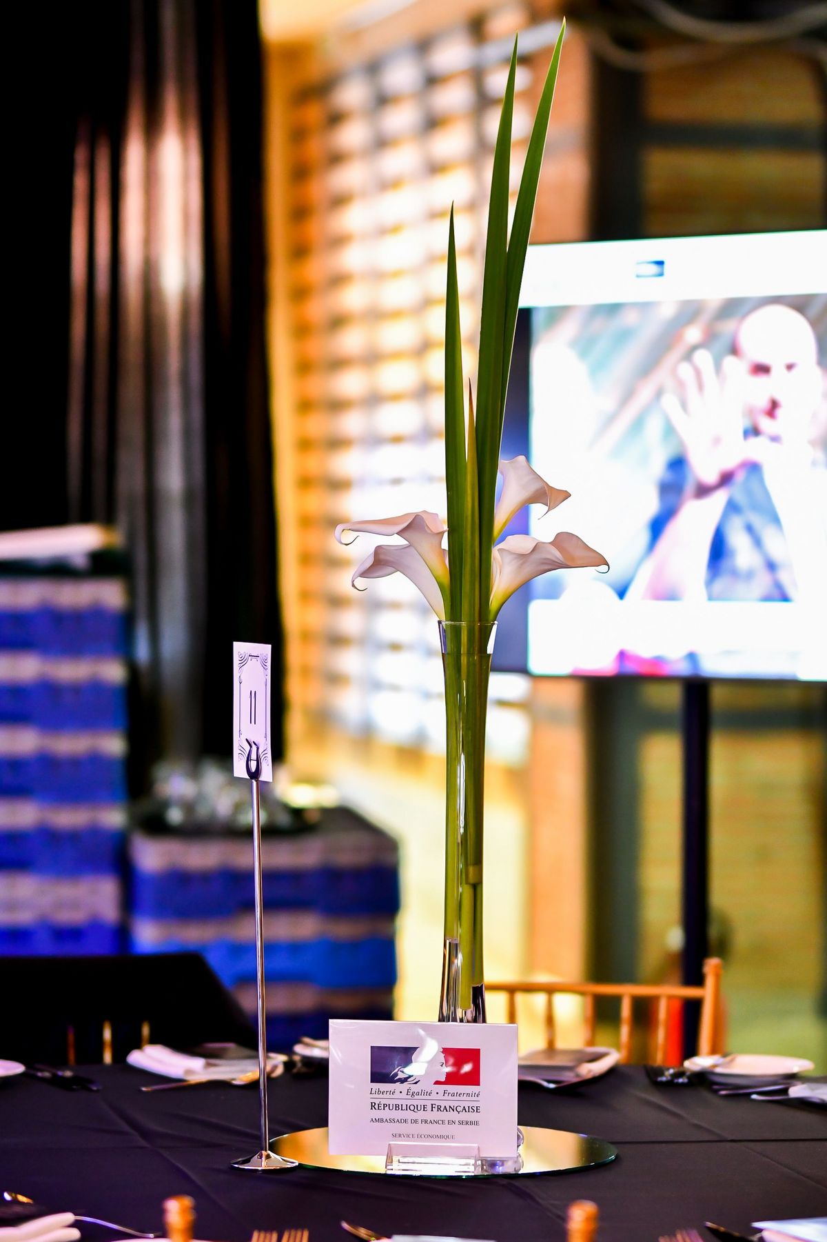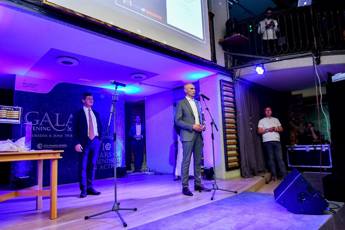 La soirée a débuté par un cocktail de bienvenue en compagnie de plus de 200 invités qui ont pu, visiter une exposition consacrée aux 10 ans de publications de la Chambre de commerce et d’industrie France Serbie. La présence de SE M. Frédéric Mondoloni, ambassadeur de France en Serbie, des représentants du corps diplomatique et de nombreux autres invités de marque, ont particulièrement embelli notre événement.
