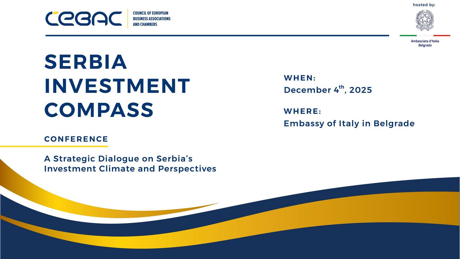 CCIFS sa zadovoljstvom poziva svoje članove na Serbia Investment Compass, događaj u organizaciji CEBAC-a, posvećen aktuelnim i budućim investicionim trendovima u Srbiji.