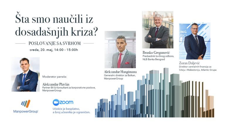Manpower group organizuje vebinar na temu "Šta smo naučili iz dosadašnjih kriza?" i poziva vas da prisustvujete u sredu, 20. maja u 14 časova.
