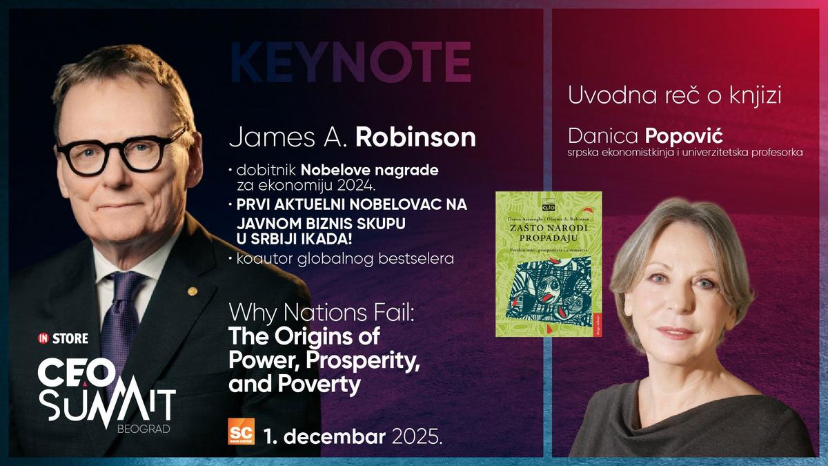 Među govornicima ovogodišnjeg summita nalazi se James A. Robinson, dobitnik Nobelove nagrade za ekonomiju 2024. godine, koji će sa učesnicima podeliti uvide o institucijama, prosperitetu i ekonomskom razvoju ali i mnogi drugi lideri u privredi.