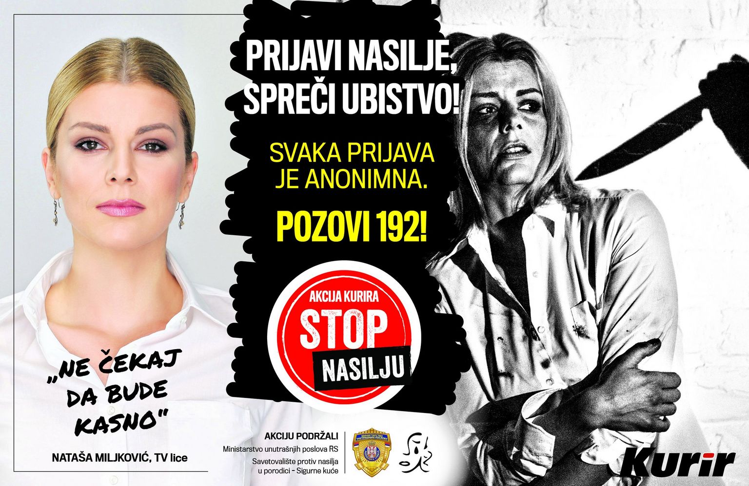 Kampanja Stop nasilju pokrenuta je nakon nezapamćenog zločina nad majkom troje dece (21). Kurir je objavio potresnu priču i javno se obavezao da će iskoristiti uticaj koji kao medij ima kako bi doprineo podizanju svesti o problemu koji društvo ne sme da ignoriše. Otvorili smo rubriku u dnevnim novinama gde smo uz pomoć g. Vesne Stanojević, koordinatorke Sigurne kuće, stupili u kontakt sa ženama koje su prošle užasne torture i objavili serijal njihovih ispovesti. Uz njihove priče, objavljivali smo tekstove stručnih sagovornika koji su sugerisali žrtvama kako da prepoznaju nasilje, na koji način da reaguju, a plasirali smo i brojeve telefona i informacije kojima smo ohrabrivali žrtve da potraže pomoć ili prijave nasilnike. Sve objave iz štampanih izdanja objavljivane su i na portalima kako bi bile dostupne što većem broju ljudi.