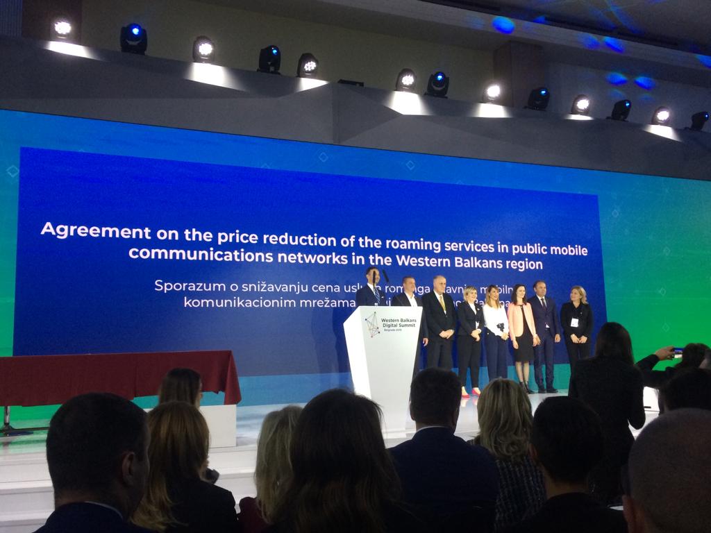 Regionalni sporazum o romingu, koji će od 1. jula omogućiti znatno niže cene rominga u zemljama Zapadnog Balkana, potpisan je danas na drugom Digitalnom samitu Zapadnog Balkana u Beogradu. Sporazum su potpisali predstavnici zapadnobalkanske šestorke, a ispred Srbije ministar trgovine, turizma i telekomunikacija Rasim Ljajić.