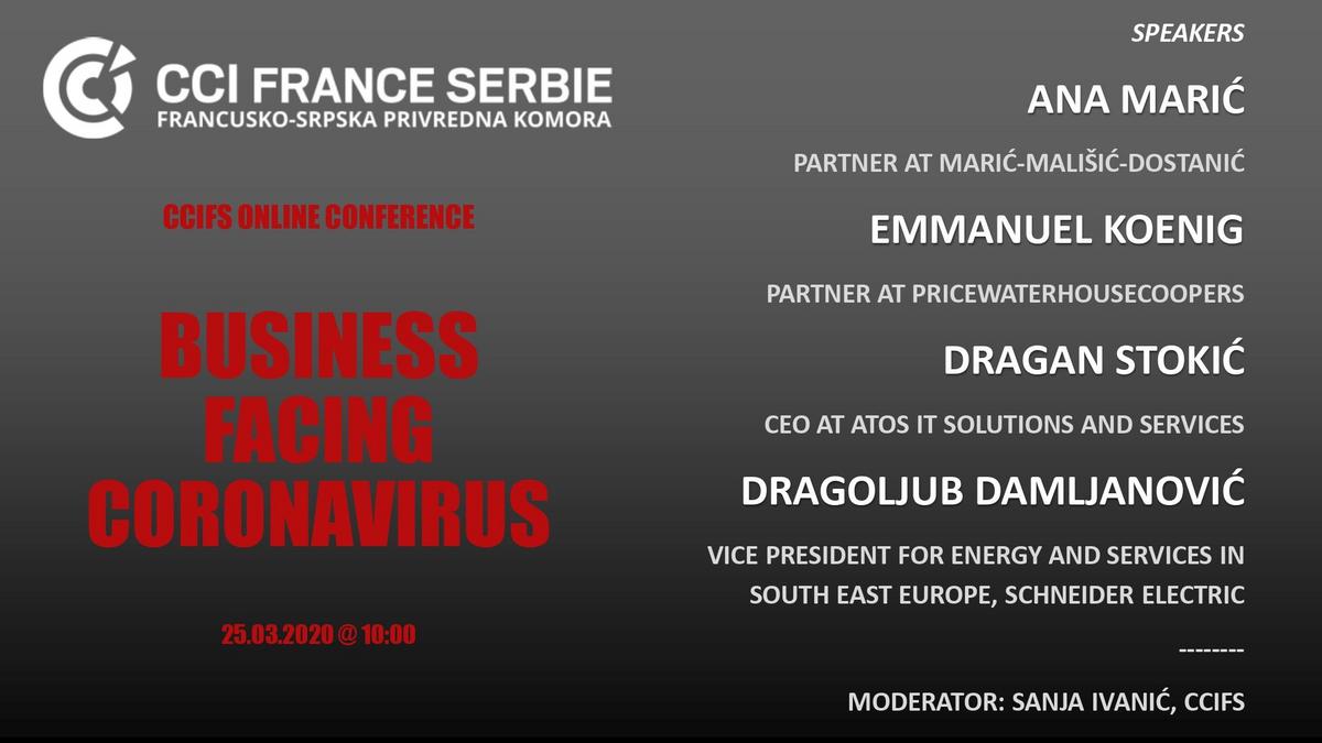 Francusko-srpska privredna komora organizovala je prvo u nizu izadnje onlajn konferencije na temu Biznisa u vreme pandemije koronavirusa. Glavne teme su bile poteškoće i izazovi sa kojima se kompanije susreću u ovim trenucima.