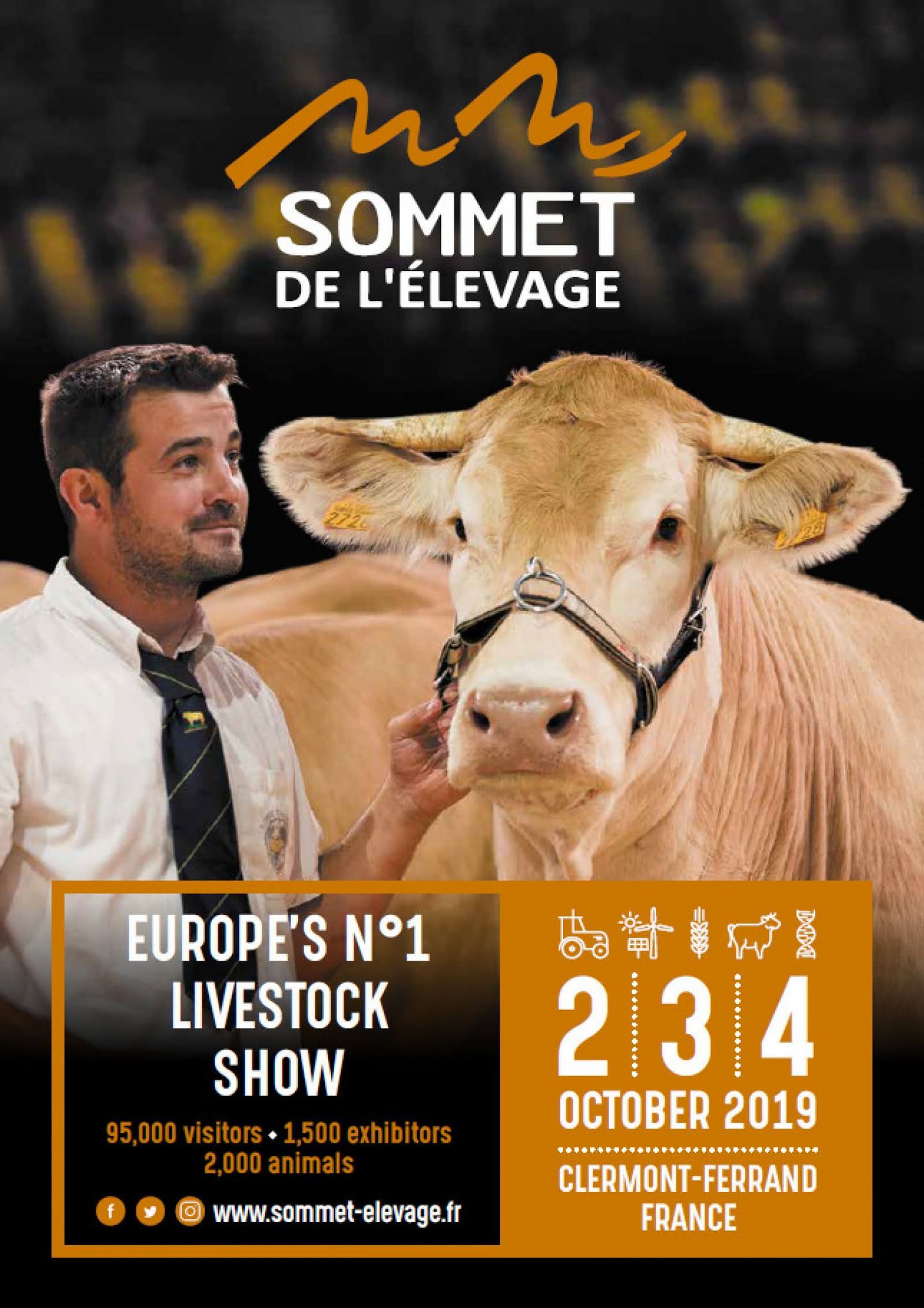 28. izdanje SOMMET DE L'ELEVAGE-a održaće se 2., 3. i 4. oktobra 2019. godine u Clermont-Ferrand / Cournon, Francuska. Opet će se više od 1500 izlagača, 2.000 životinja i 95.000 profesionalnih posetilaca okupiti da učestvuju u ovom događaju, koji je sada naveden kao referenca među najvećim svetskim profesionalnim sajmovima uzgoja životinja.