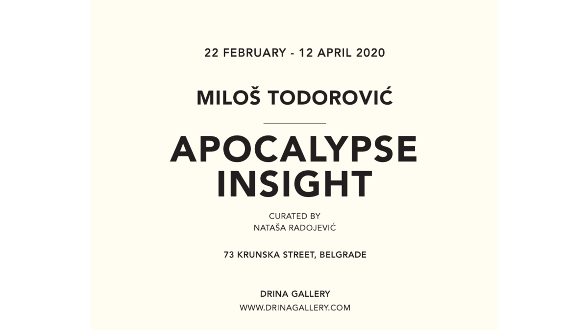 Drina Gallery invites you to a private view of the exhibition "Apocalypse Insight", where artist Miloš Todorović will exhibit his latest series of paintings. This rare and remarkable cultural event will be Miloš Todorović's first exhibition in Belgrade after 27 years since, at the invitation of academician Vladimir Veličković, he went to Paris to study at the École nationale supérieure des Beaux-Arts where he obtained his master's degree in painting in 1999.