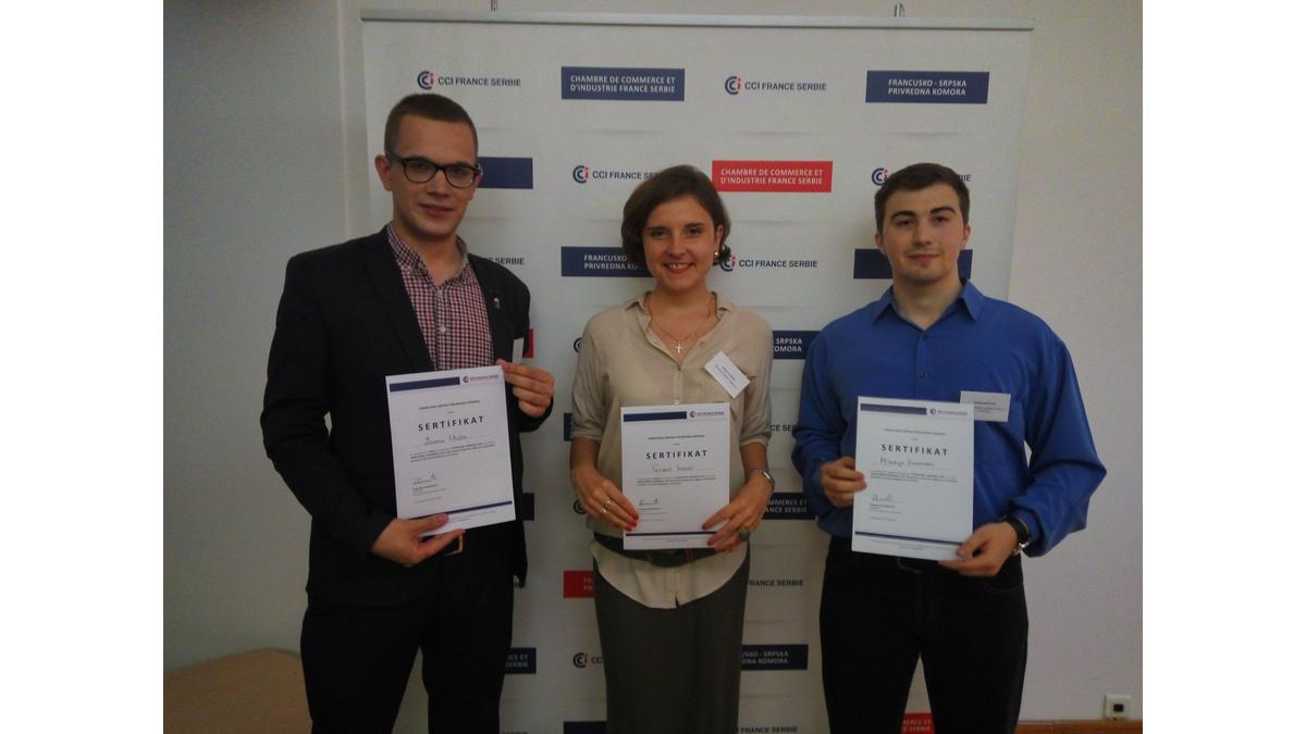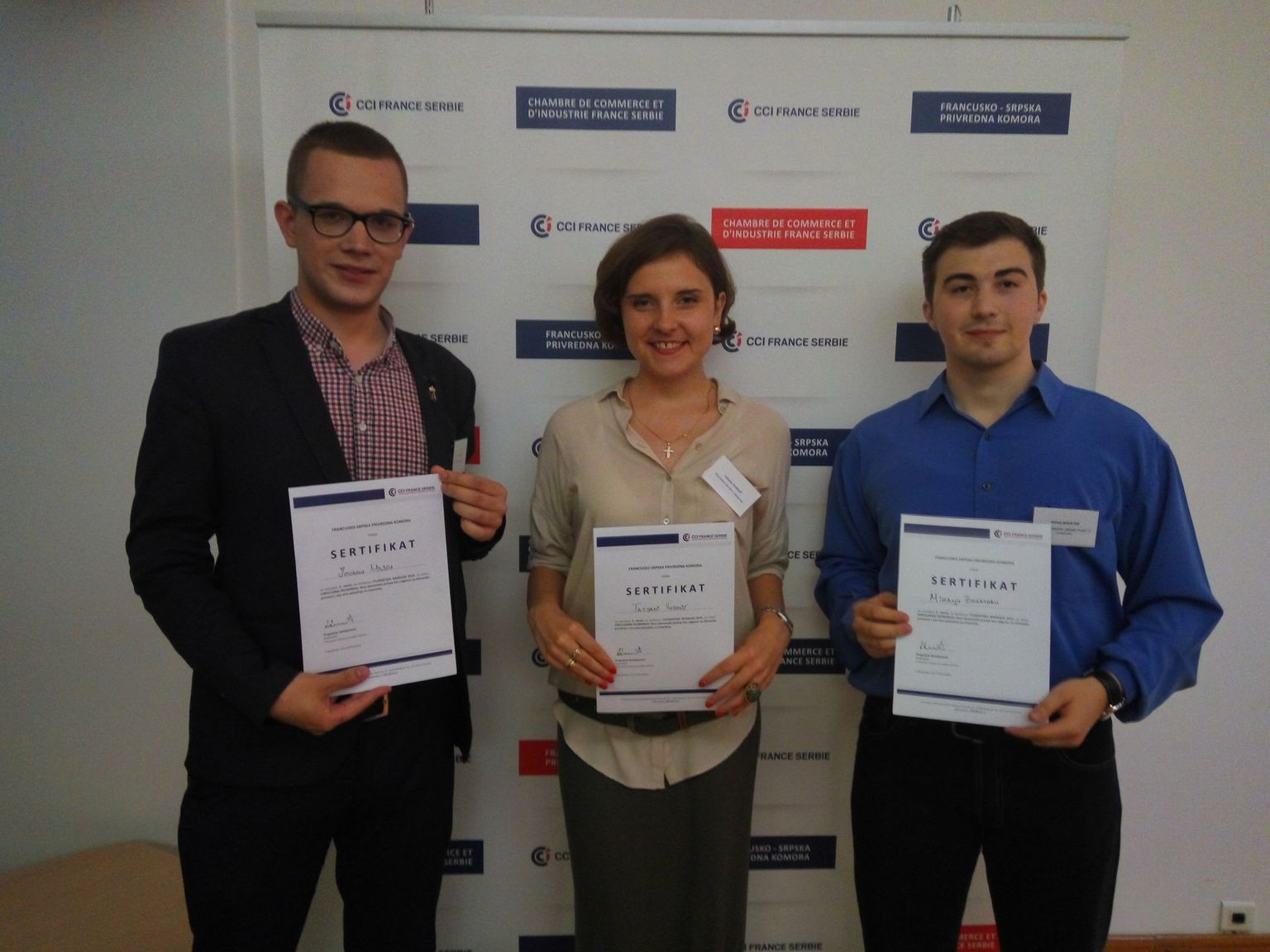 Zahvaljujući kompanijama članicama Komore, najbolji studenti osvojili su vredne novčane nagrade. Prvu nagradu od 1,500 evra koju je sponzorisala kompanija Veolia Central & Eastern Europe osvojio je Mihalj Bakator sa Tehničkog fakulteta „Mihajlo Pupin“ u Zrenjaninu. Druga nagrada od 1,000 evra koju je sponzorisala kompanija Schneider Electric pripala je Jovanu Miliću sa Mašinskog fakulteta u Nišu, dok je Tatjana Vujović sa Ekonomskog fakulteta u Beogradu osvojila treću nagradu u iznosu od 500 evra, koju je dodelila kompanija Lafarge.