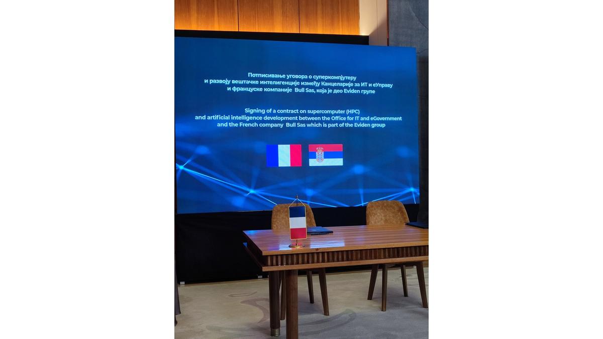 Eviden grupa, član Francusko-srpske privredne komore, potpisala je ugovor o razvoju superkompjutera i veštačke inteligencije sa Kancelarijom za IT i eUpravu, 4. aprila 2025. godine u Palati Srbije.