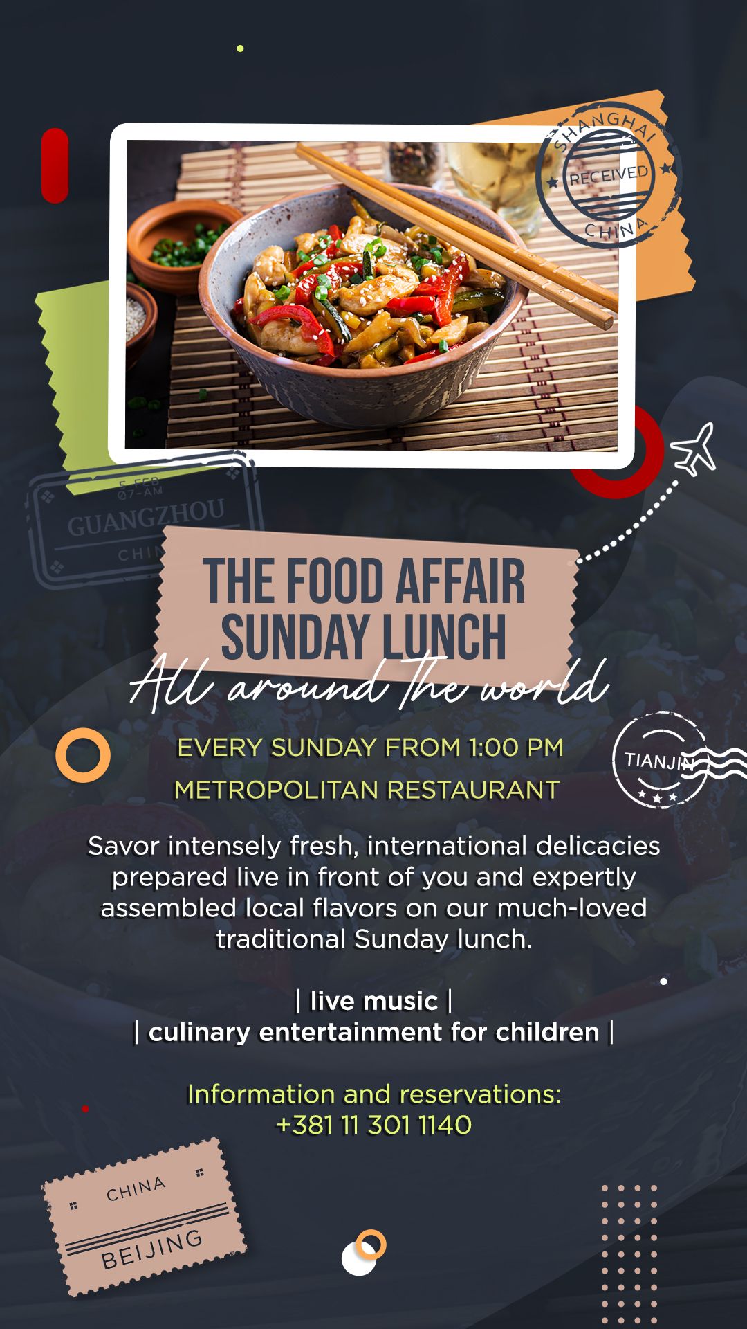 U hotelu Hyatt od nedelje 05.02.2023. godine počinje nova sezona nedeljnog ručka. Nova sezona donosi i novi naziv, i to: The Food Affair All around the world. Pored standardne ponude hrane svakog meseca će ponuda biti obogaćena određenim specijalitetima internacionalne kuhinje. U februaru će gosti moći da uživaju uz specijalitete kineske kuhinje. Da bi ugođaj bio potpun, kuvari će pred njima pripremati jela. Najmlađi posetioci će biti u prilici da zajedno sa glavnim kuvarom pripremaju kineski specijalitet- dim sum, i da učestvuju u kreativnim radionicama sa animatorima.