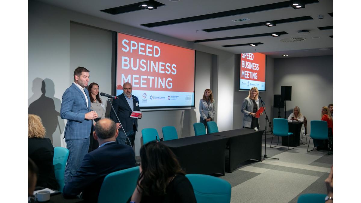 Speed business meeting predstavlja format putem kog kompanije iz različitih poslovnih sektora imaju priliku da razmene kontakte, iskustva i ideje. Na ovom događaju prisutni učesnici imali su priliku da učestvuju na 12 kratkih sastanaka u trajanju od po 8 minuta. Učesnici su razmenili kontakte i razgovarali o delatnostima preduzeća iz kojih dolaze, ali i o planovima za budućnost. Na događaju je učestvovalo 40 učesnika ispred kompanija članova pomenutih poslovnih asocijacija.