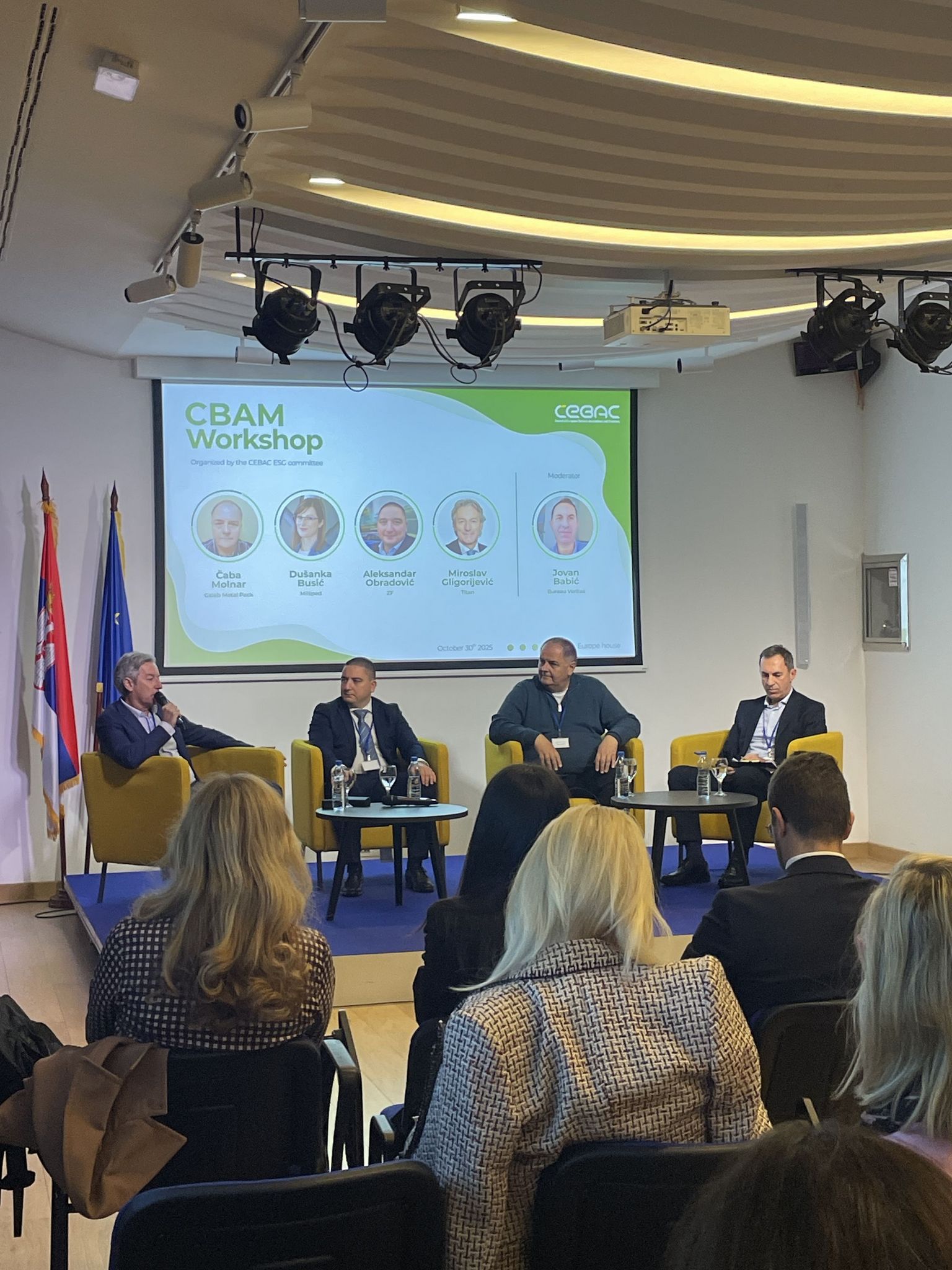 U Evropskoj kući u Beogradu danas je održana CBAM radionica koju je organizovao ESG komitet CEBAC-a, sa ciljem da kompanijama predstavi CBAM regulativu koja će u Srbiji stupiti na snagu 1. januara 2026. godine.