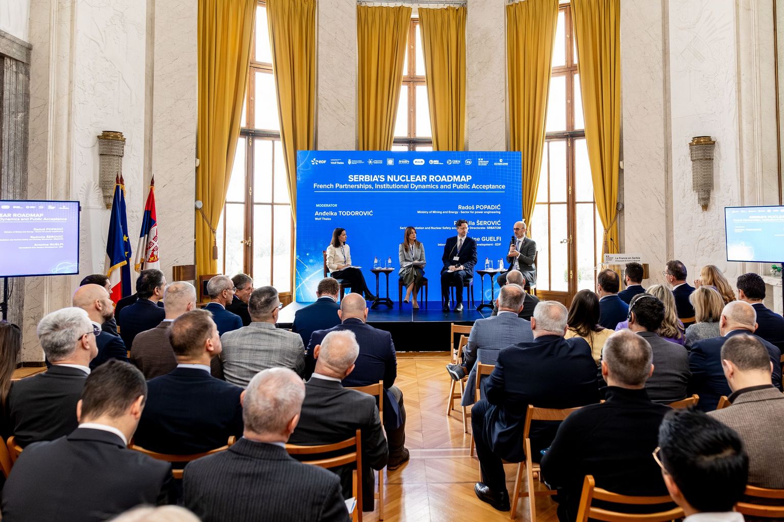 Konferenciju su otvorili Nj.E. Florence Ferrari, ambasadorka Francuske u Srbiji, Alexis Brierre, predsednik Francusko-srpske privredne komore, Radoš Popadić, vršilac dužnosti pomoćnika ministra rudarstva i energetike, i Antoine Guelfi, direktor za razvoj novih međunarodnih nuklearnih projekata u EDF-u. Njihova izlaganja istakla su značaj strateškog dijaloga između Srbije i Francuske u oblasti energetike.