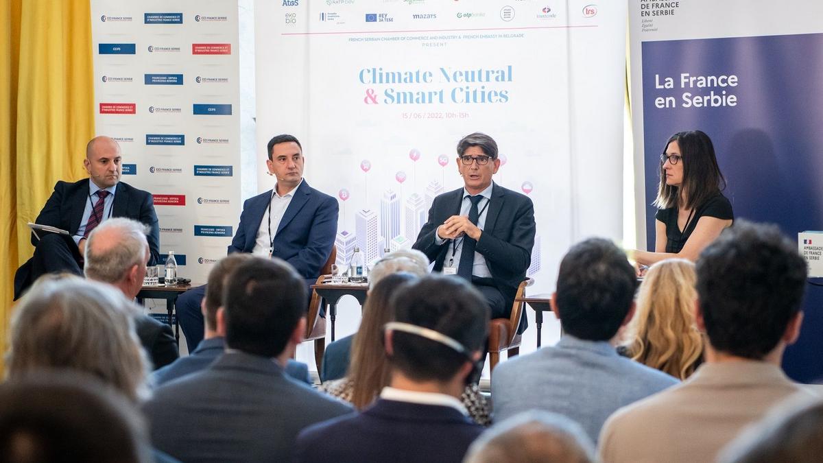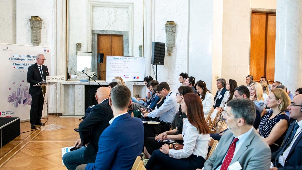U Francuskoj ambasadi održala se poslovna konferencija na temu „Klimatski neutralni i pametni gradovi“. Konferencija, u organizaciji Francusko-srpske privredne komore (CCIFS) u saradnji sa Ambasadom Francuske u Srbiji, prva je u nizu događaja projekta The quest for net Zero pokrenutog na inicijativu CCIFS kluba za održivi razvoj, a u kontekstu usklađivanja srpske privrede sa Zelenom agendom EU.