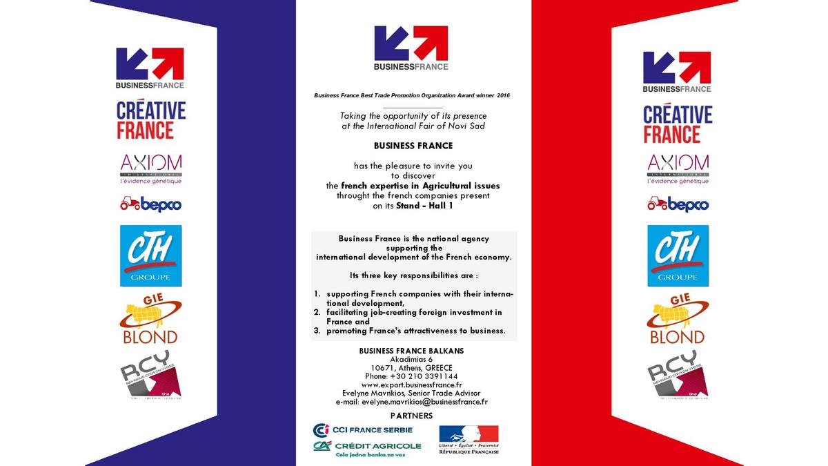 Francuska agencija Business France prisutna je na Sajmu poljoprivrede sa štandom koji se nalazi u Hali 1.