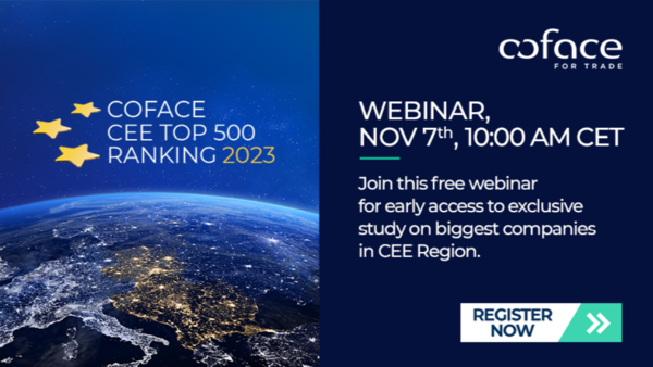 Odgovore na ova i mnoga druga pitanja uživo na webinaru "Coface CIE Top 500 kompanija", 7. novembar, 2023 – 10.00-11.00 - odgovaraće Coface-ov glavni regionalni ekonomista g. Grzegorz Sielewicz.